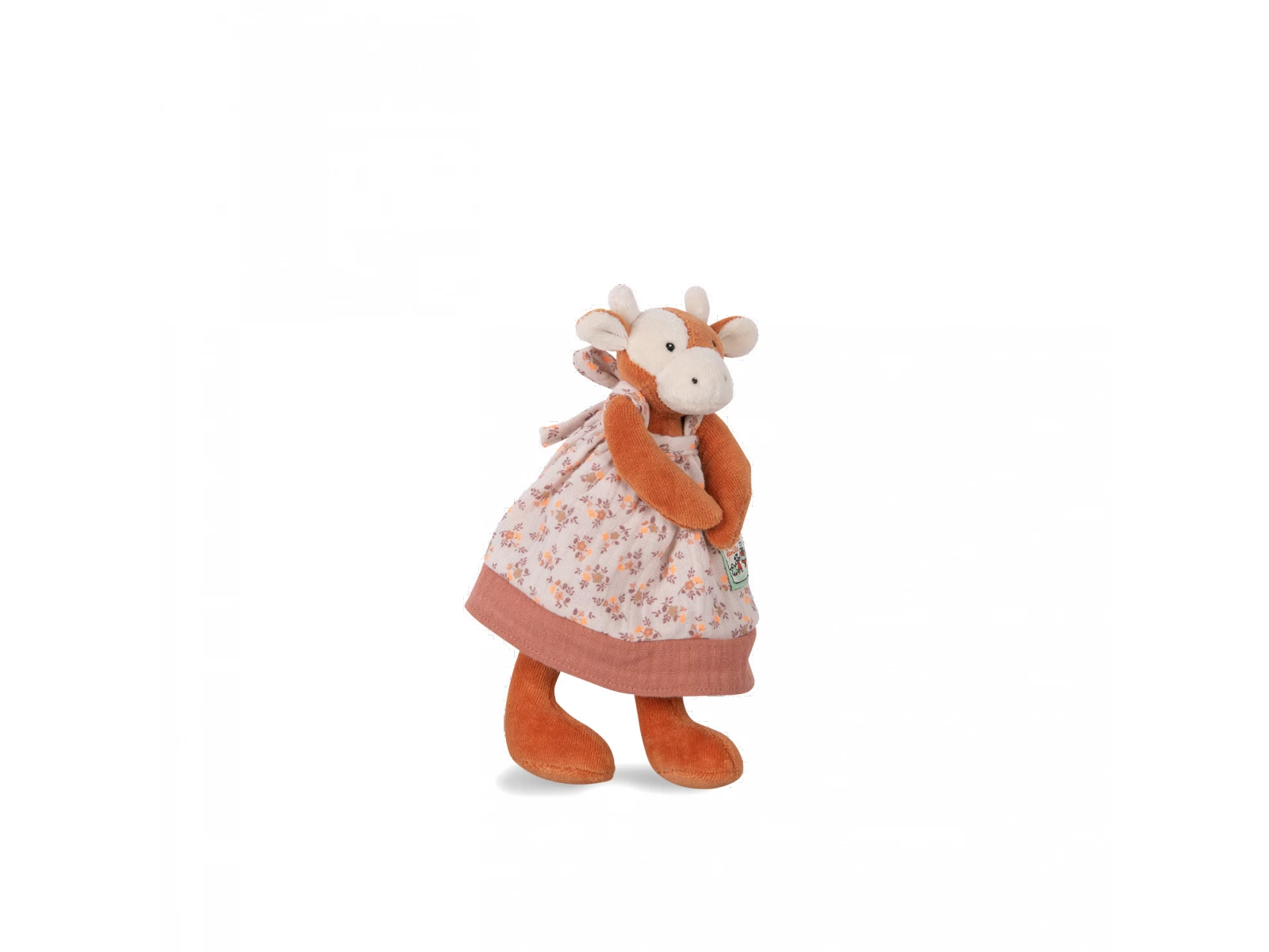 Poupée miniature en velours au doux visage brodé, facile à saisir par les petites mains. Avec ses petites cornes sur la tête et sa jolie robe à fleur, Charlotte la vache est l’amie idéale pour partager de tendres moments de complicité avec bébé.
