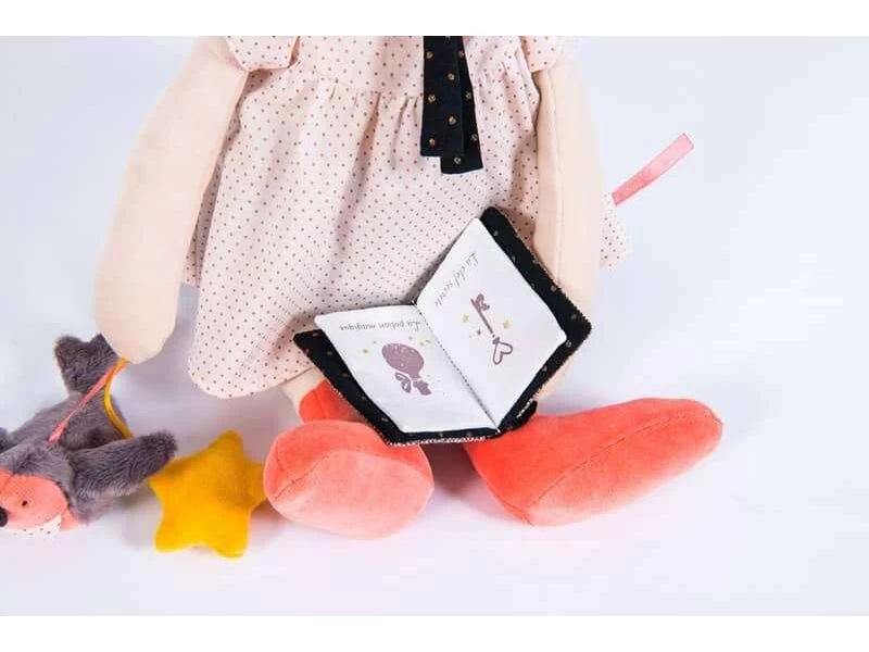 Vêtue de sa jolie robe à pois cuivrés, Mimi la souris d’activités aime jouer toute la journée. Elle transporte avec elle une étoile à grelot, un oiseau pouët et son grimoire à secrets qui fait de drôles de bruits… Oh ! Même ses pieds font ding-ding !