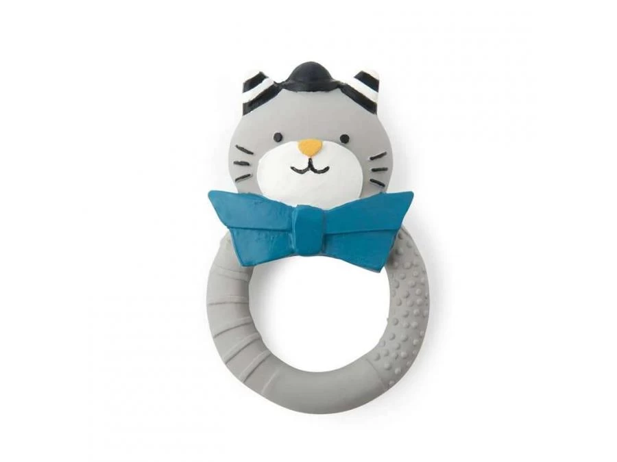 Anneau en caoutchouc 100% naturel, issu de la sève d’Hévéa, avec le joyeux minois de Fernand le chat, toujours élégant ! Pour soulager les dents de bébé ou jouer dans le bain, il n’a ni trou ni sifflet pour éviter l’accumulation de saletés à l’intérieur.