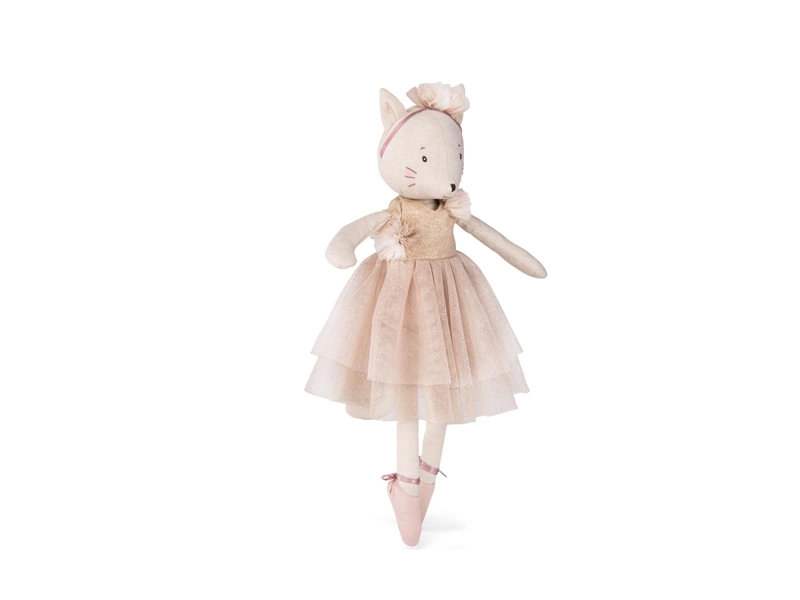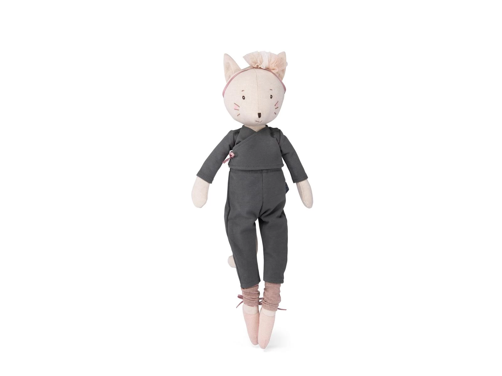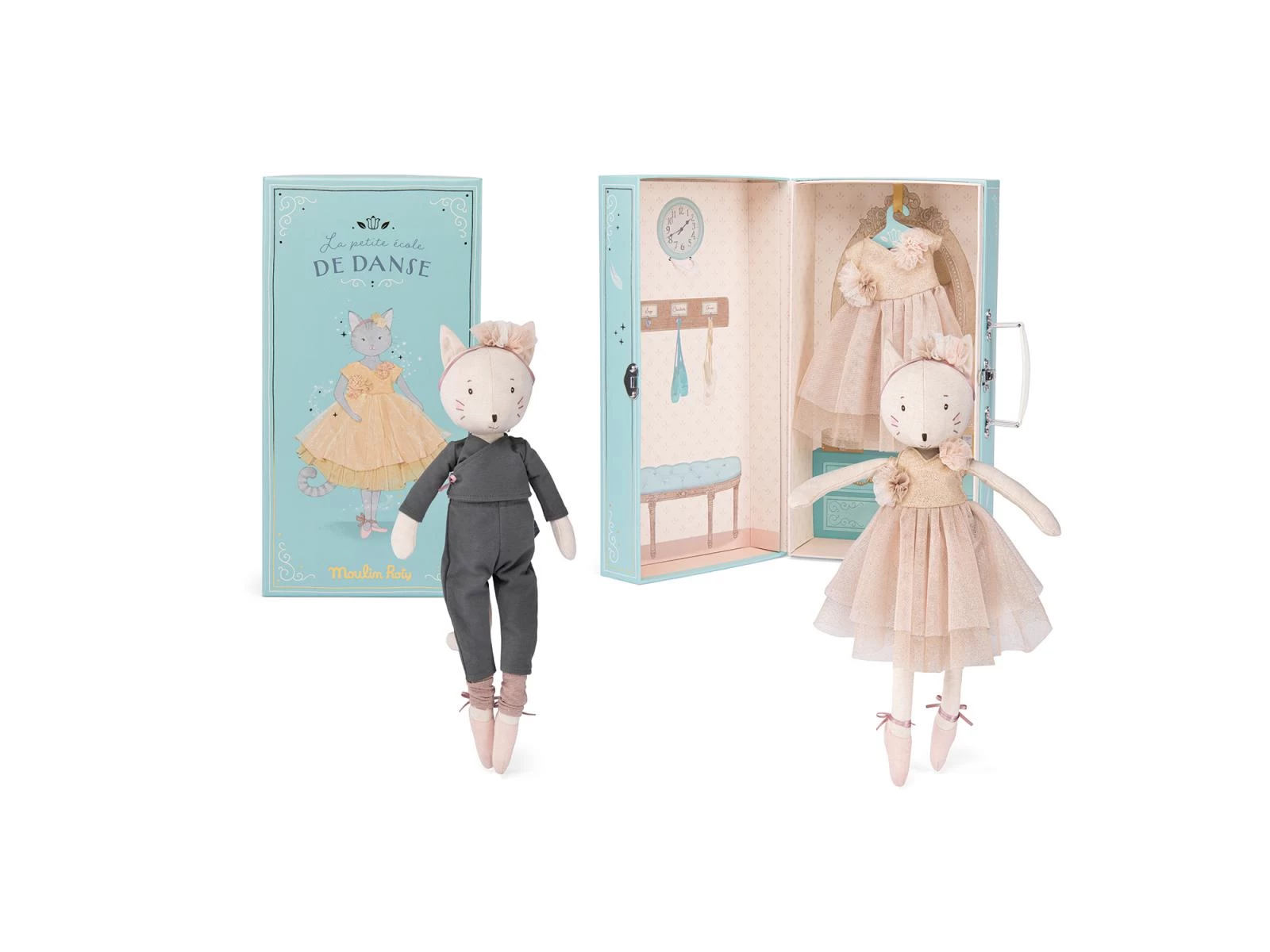 Célestine la poupée chat nous invite dans sa penderie. Une valise armoire avec miroir intégré qui comprend tenue d’échauffement et robe de gala sur cintre. Petits pas, pas de deux, pas de chats… il faut s’entraîner avant le spectacle de fin d’année.