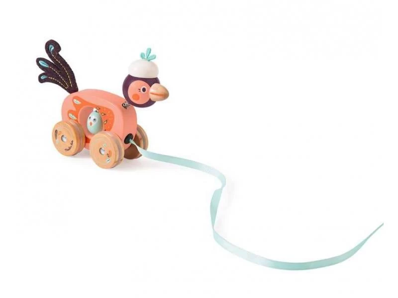 Petit oiseau à tirer en bois coloré à l’image de la gamme, à emmener partout avec soi. Ses ailes et sa tête, fixée sur ressort, s’agitent quand l’oiseau avance ! Jouet à tirer par un ruban. Développe la motricité de l’enfant.