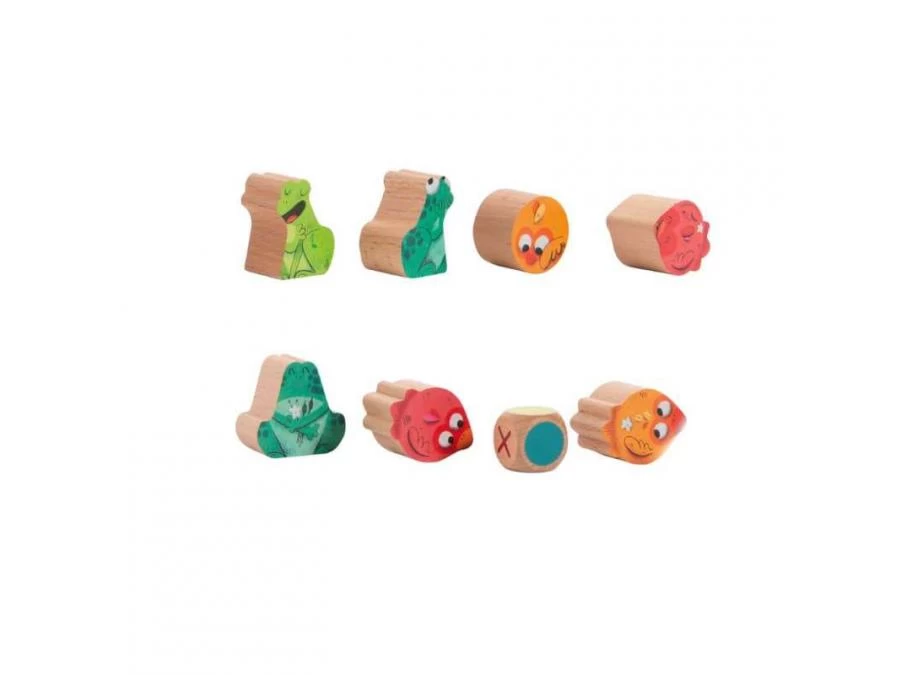 Lance le dé et essaye d’empiler les 15 pièces en bois, illustrant les joyeux habitants de la jungle. Le dé lancé affiche la couleur à placer en équilibre sur Zimba la panthère. Prends garde à ne pas tout faire tomber !