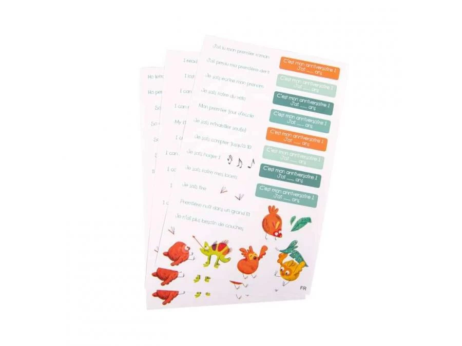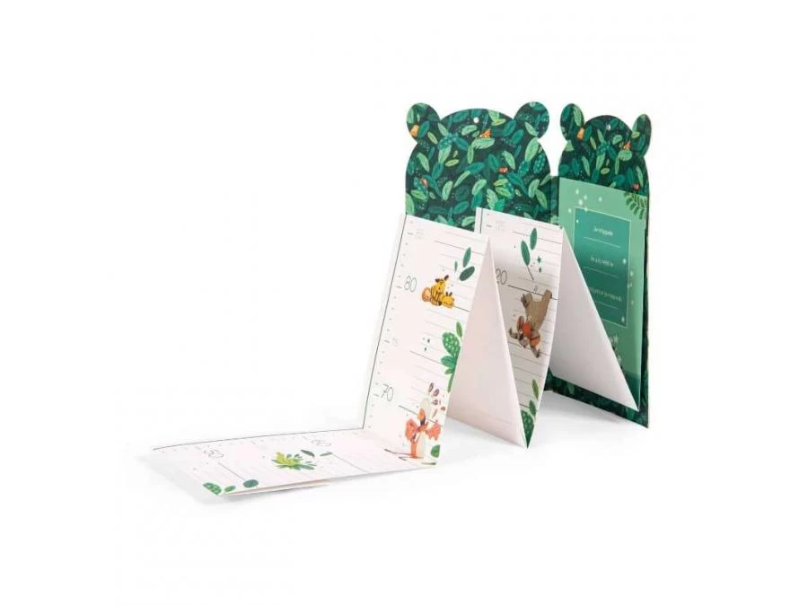 Toise en carton avec stickers déco reprenant les couleurs et illustrations de la gamme. Présentée sous la forme d’un carnet, elle devient une fois dépliée, un joli accessoire déco pour y noter la taille de bébé mais aussi plein d’anecdotes !