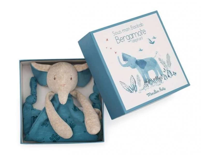 Moulin Roty 669016 – Doudou Attache-tétine éléphant Sous Mon Baobab