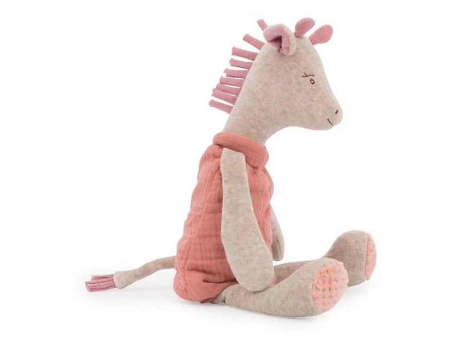 Bibiscus la girafe nous offre son plus joli minois… Toute douce avec sa combinaison en lange et son corps en velours chiné, elle a aussi une superbe crinière rose cuivrée. Elle est installée dans une jolie boîte cadeau toute en rondeur.