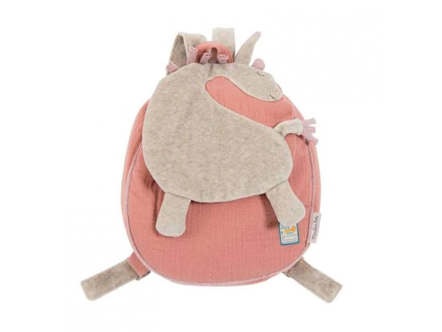 En lange de coton biologique et velours éponge chiné, l’adorable girafe dort paisiblement sur un sac à dos pratique et solide, avec fermeture à élastique et scratch pour le capuchon ! Il peut être brodé au prénom de l’enfant.