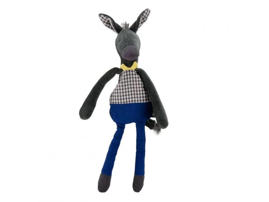 Un hochet âne avec de grandes oreilles pour écouter les secrets et de longues pattes à attraper pour de tendres instants câlins. Il possède de nombreuses textures et couleurs pour éveiller bébé. Certifié OEKO-TEX®.
