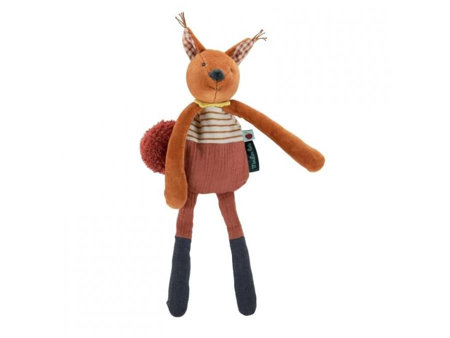 Un hochet écureuil avec une queue en panache et de longues pattes à attraper pour de tendres instants câlins. Il possède de nombreuses textures et couleurs pour éveiller bébé. Certifié OEKO-TEX®.