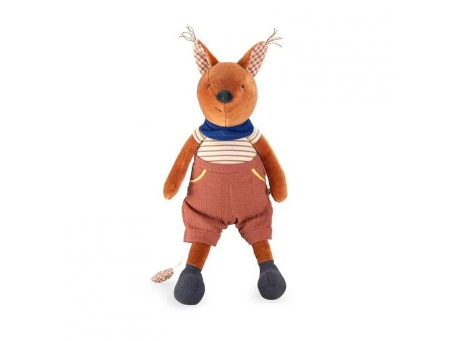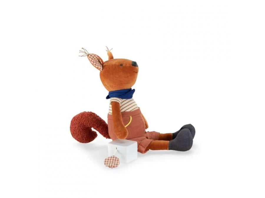 Jeu de textures et couleurs pour ce tendre compagnon écureuil, certifié OEKO-TEX®. La boîte à musique est actionnée en tirant sur la pastille. Pratique, le boitier musical est déhoussable pour faciliter le lavage.