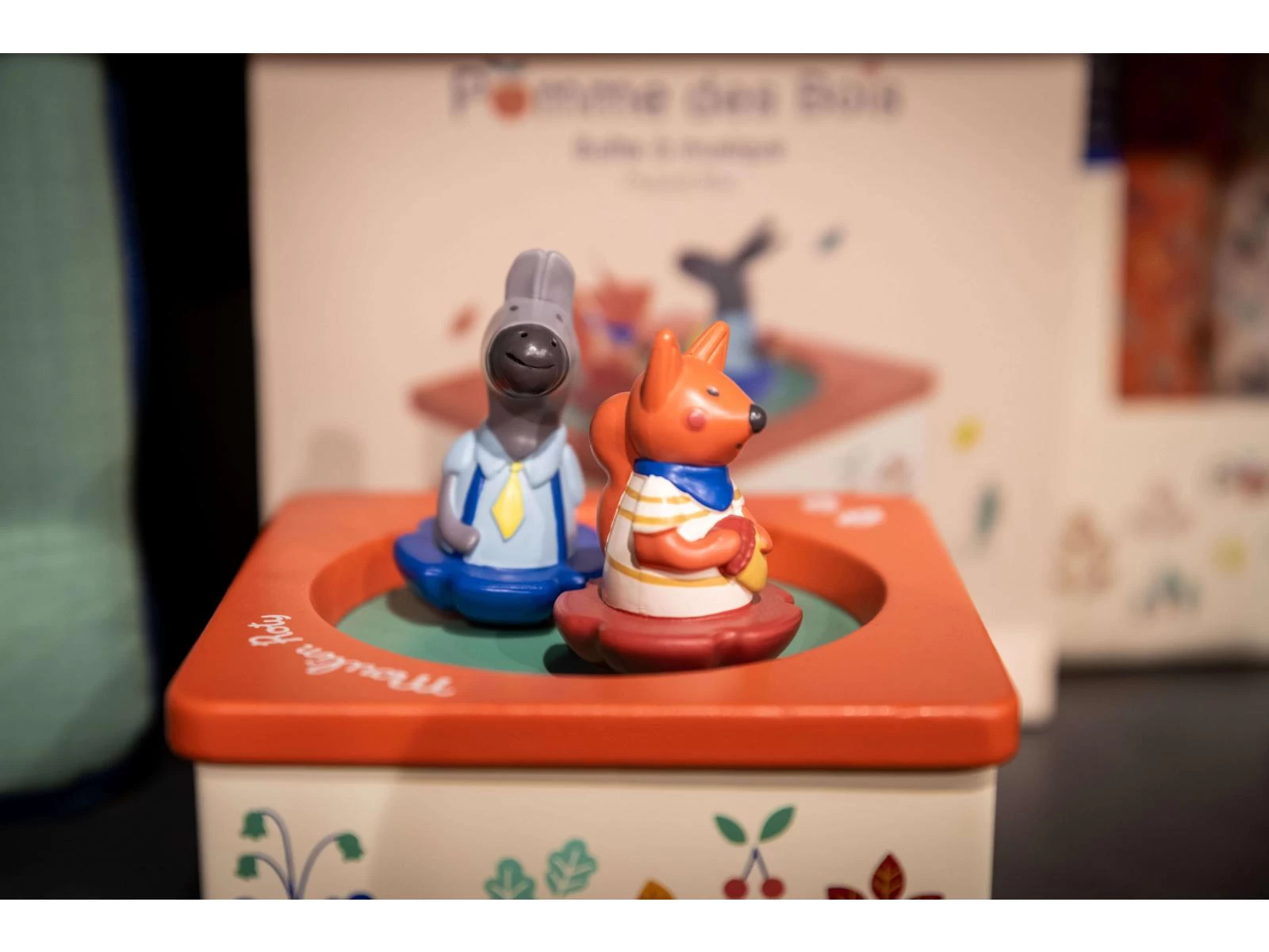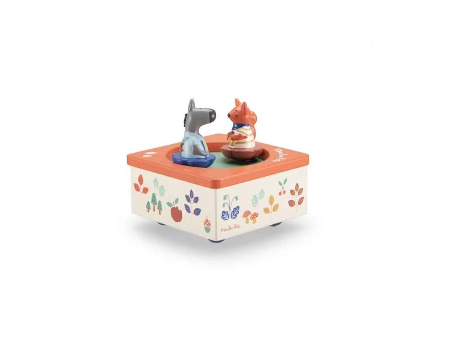 Boîte à musique illustrée d’un joyeux paysage fait de fleurs sauvages et de petits trésors des bois colorés ! Anatole l’âne et Harry l’écureuil tournent et dansent sur la piste pour bercer et endormir bébé.