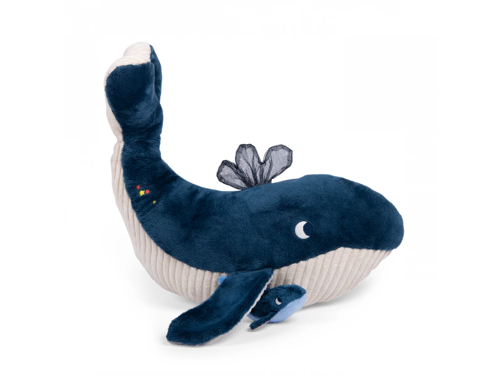 Une grande baleine majestueuse et son bébé pour accompagner les tout petits dans leur éveil aux sons et au toucher. Miroir, grelot, papier crissant, étiquettes à attraper… Une foule d’activités complétée par un jeu de matières douces et côtelées.