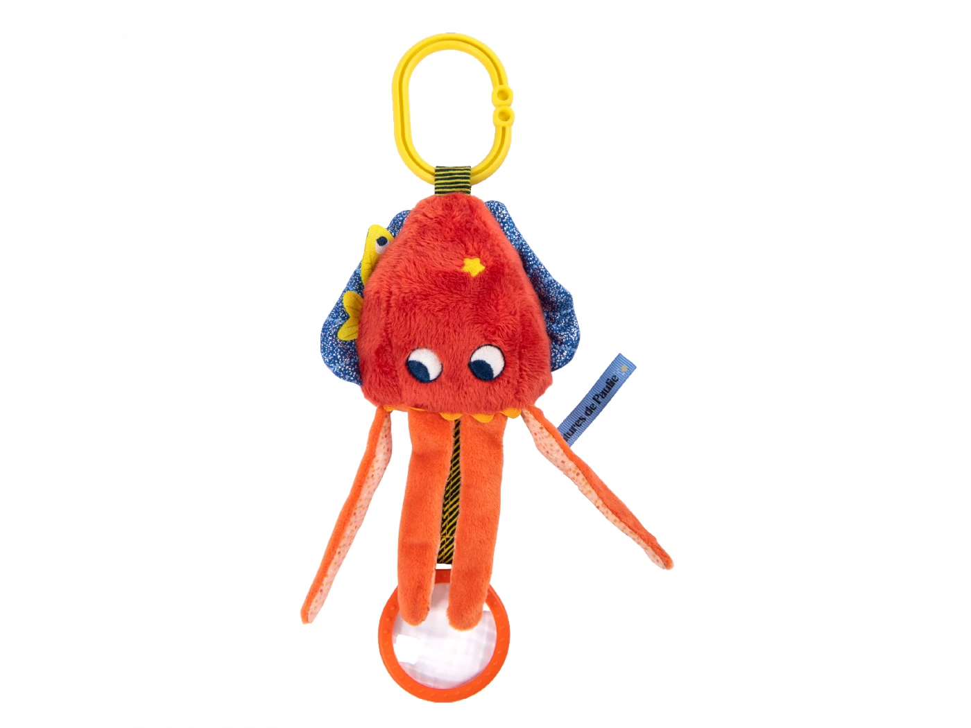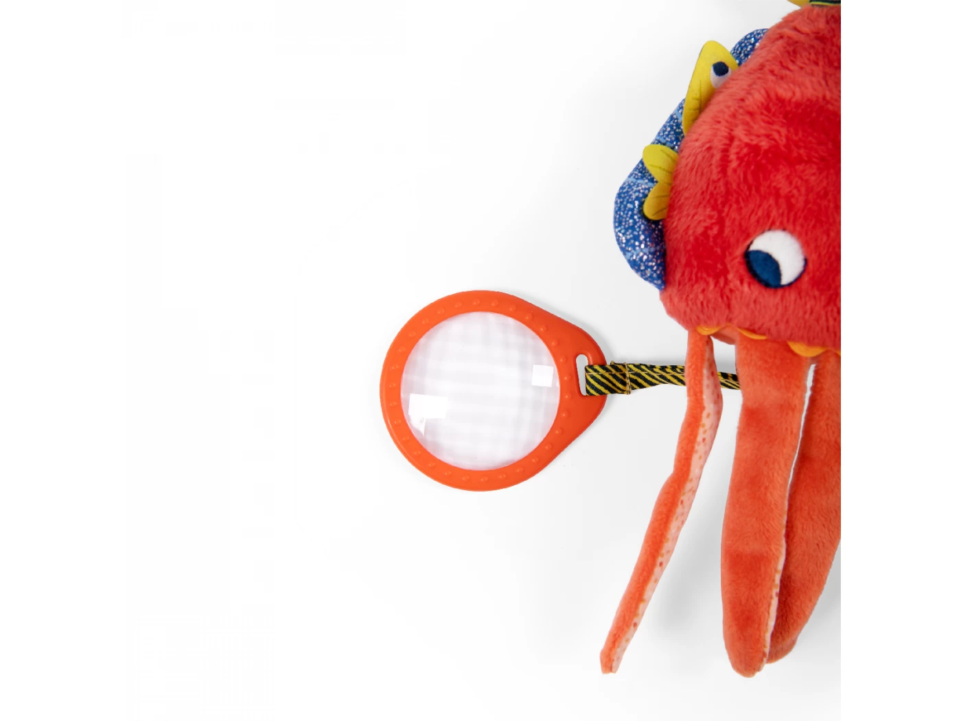 La seiche d’activités très colorée est sortie de l’océan pour jouer avec bébé : papier crissant, prisme, étiquettes à attraper… Elle s’accroche partout et peut être complétée par d’autres petites activités nomades de la collection.