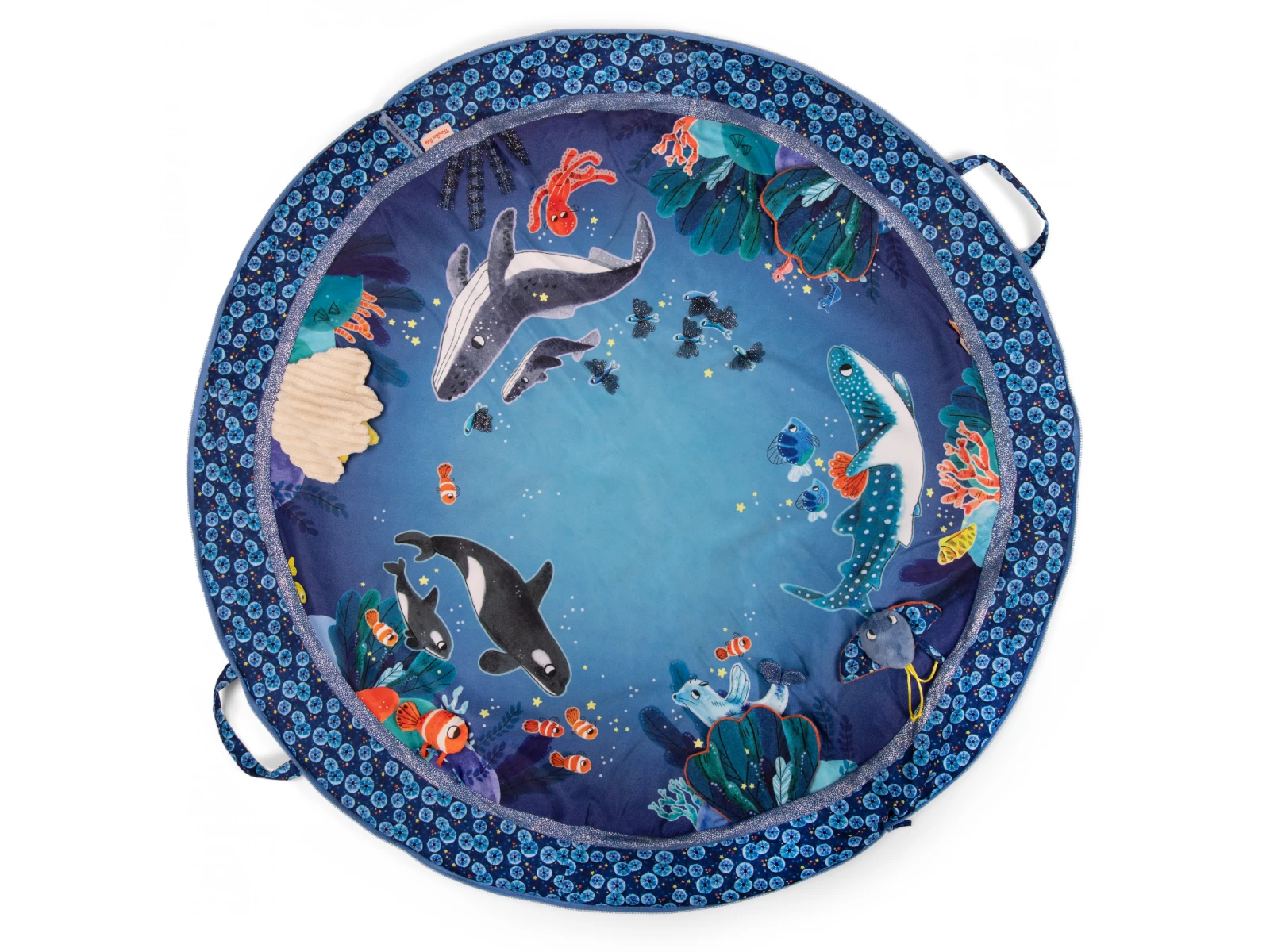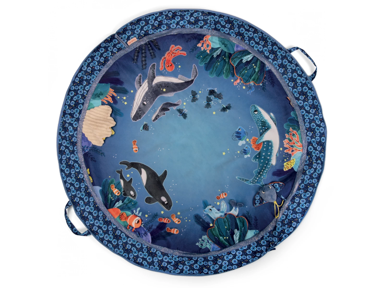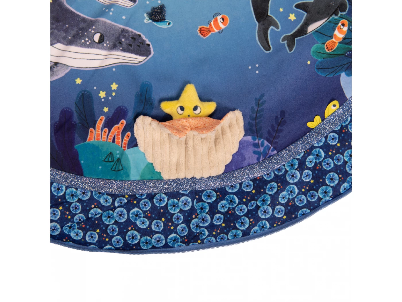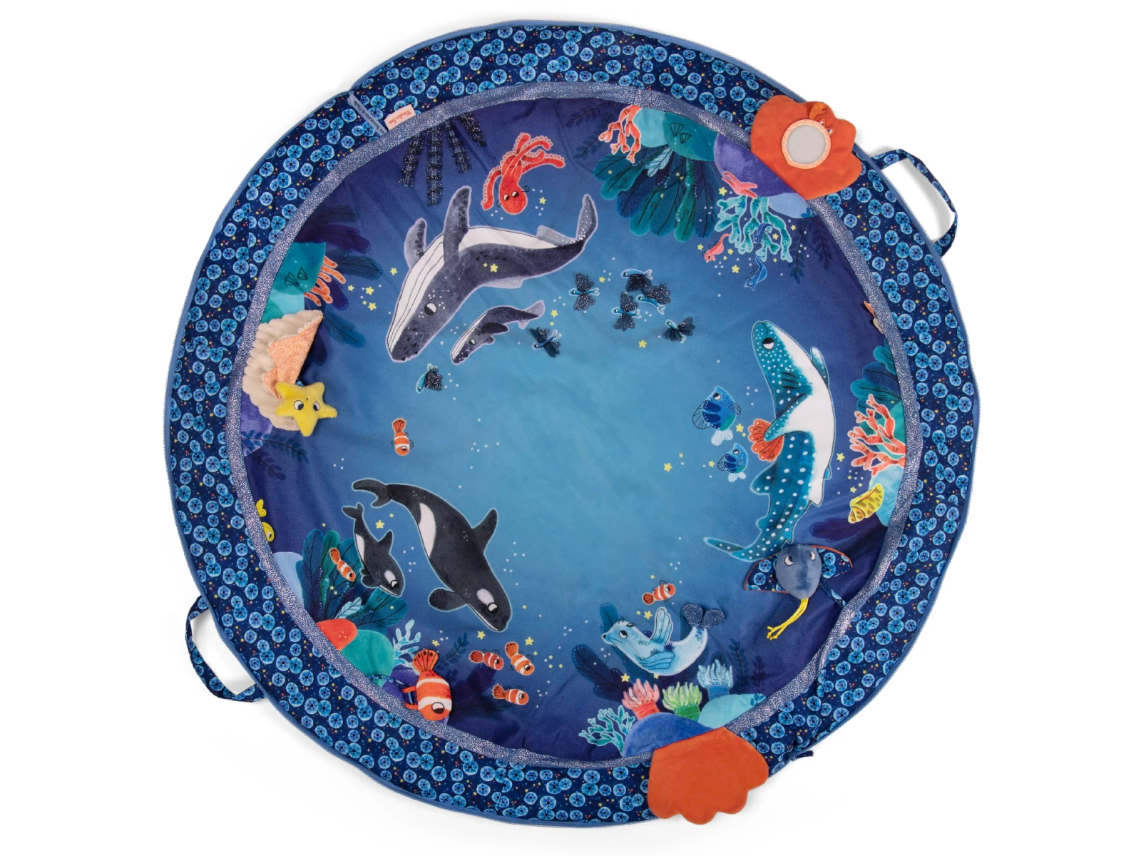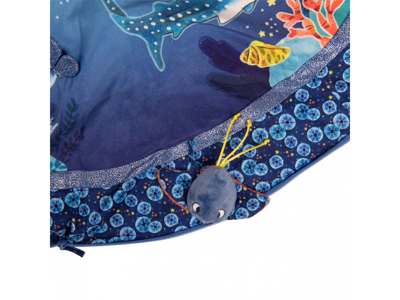 Tapis d’éveil doux et matelassé illustré de Paulie le poulpe et ses amis. Miroir, grelot, bruit de papier, pouët… plein d’activités aux couleurs éclatantes et textures variées entraîneront bébé pour une immersion sous l’océan. Pratique, le tapis se plie en deux et se referme par un zip !