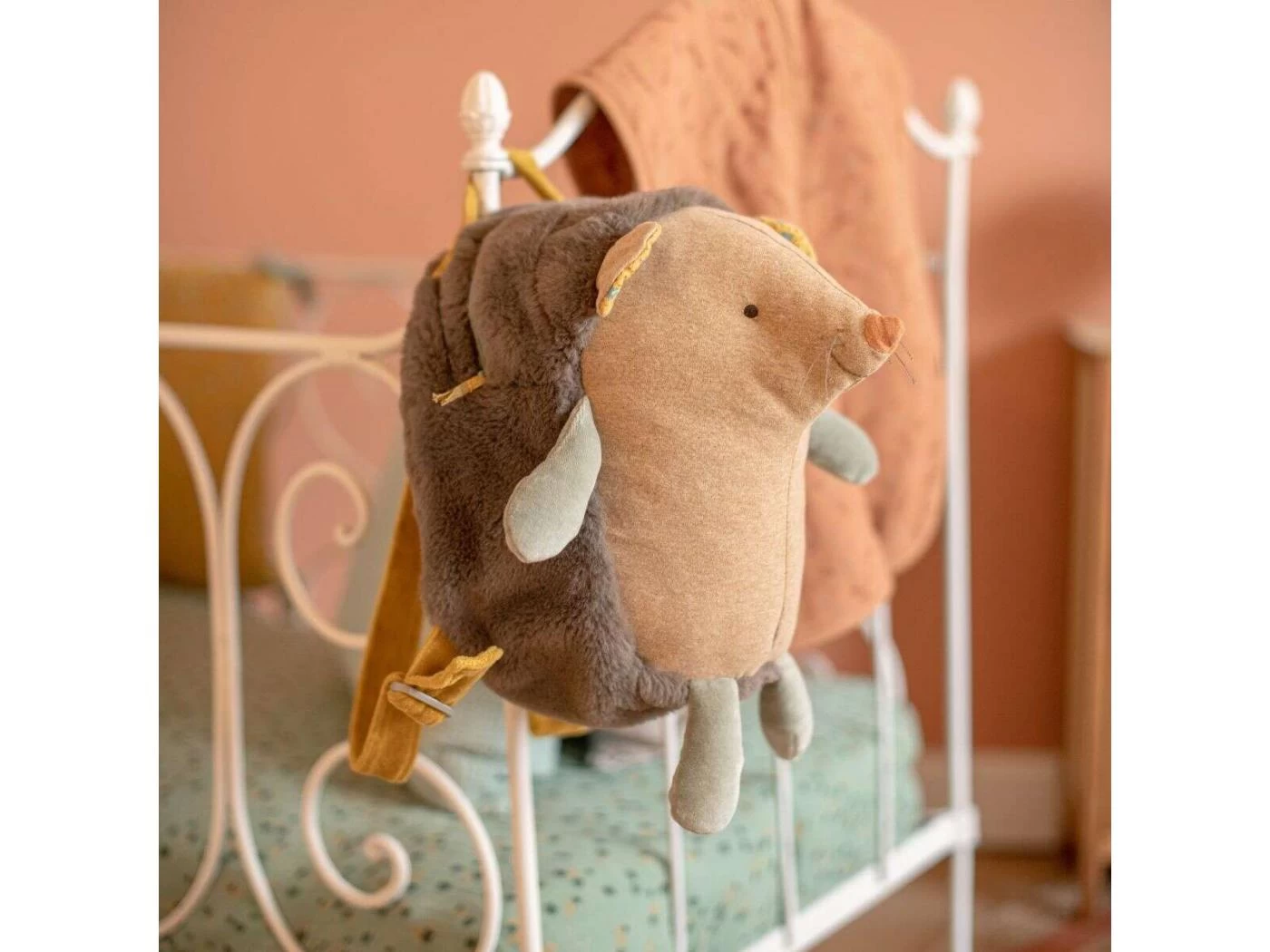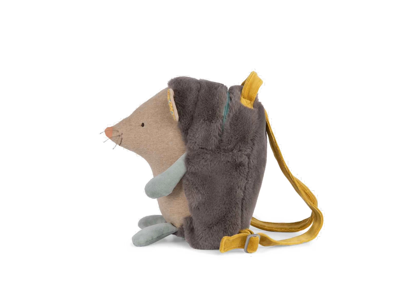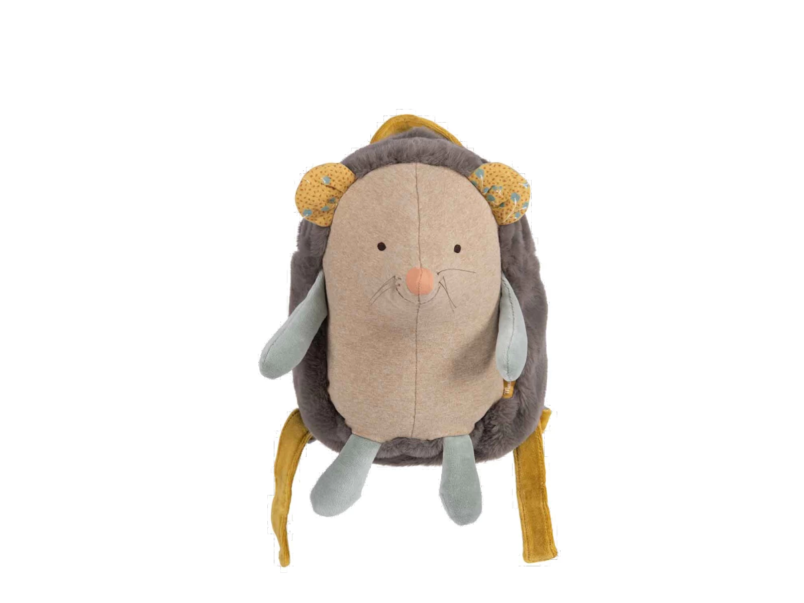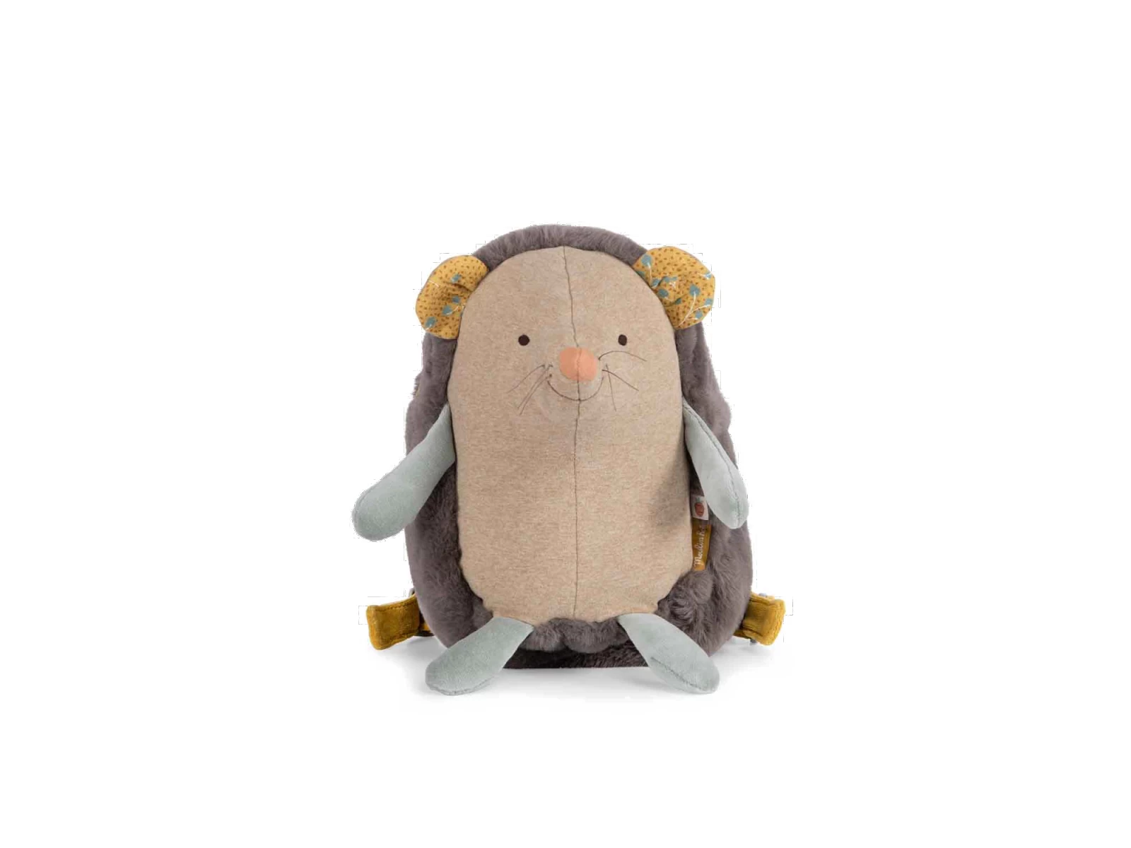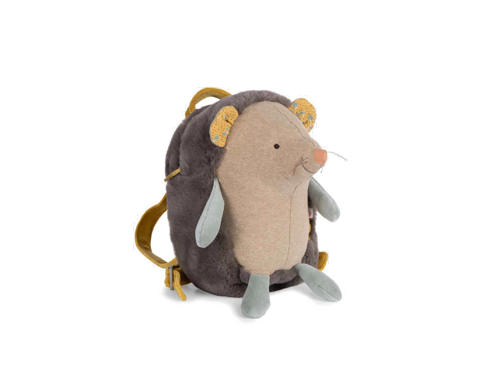 Sac à dos rigolo à l’effigie d’un hérisson au ventre rebondi en jersey chiné. Tout doux, il dispose d’une fermeture à zip, de bretelles réglables et d’un crochet porte-manteau !