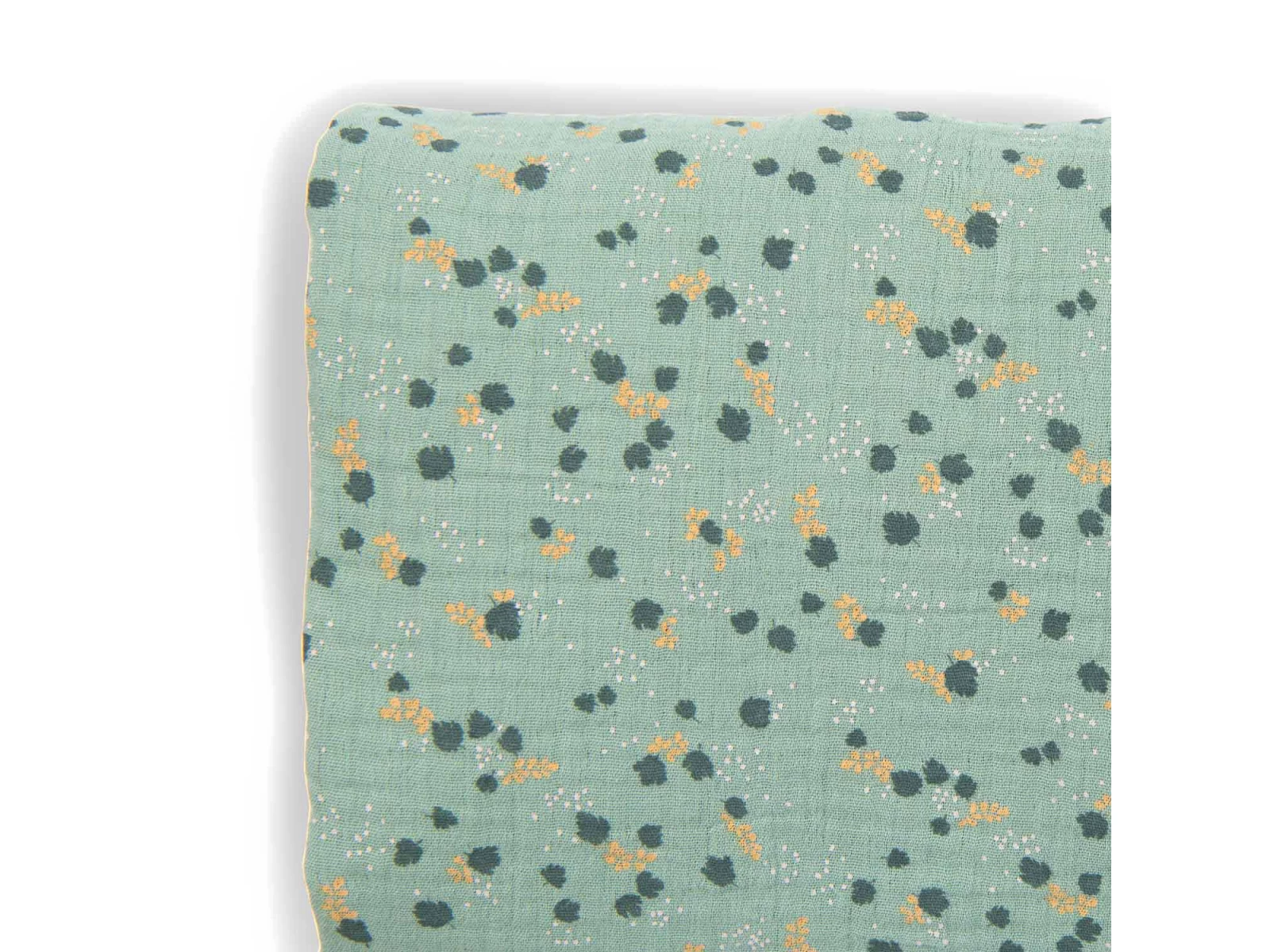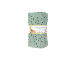 Pour assortir le lit de bébé, drap housse sauge en lange, 100% coton certifié OEKO-TEX®. Dimensions : 70x140cm.