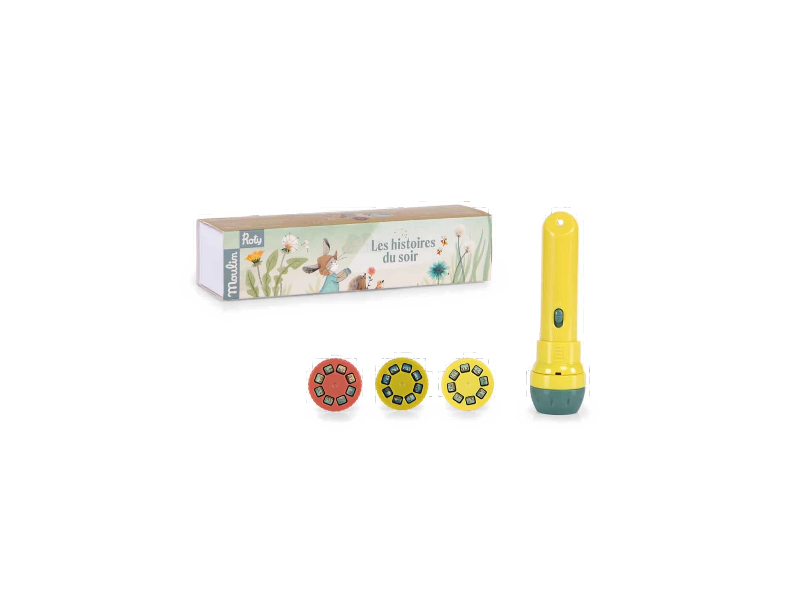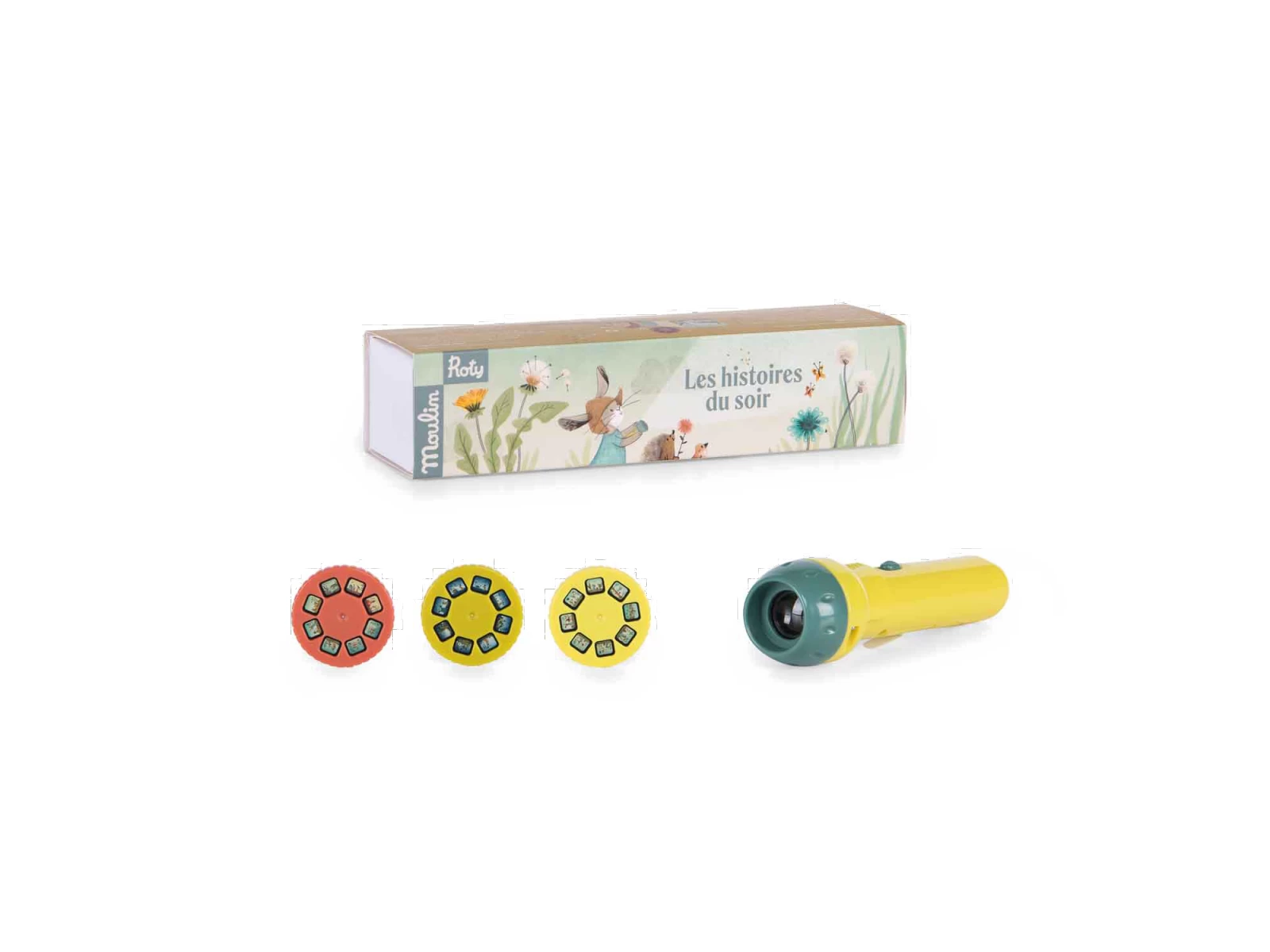 Bienvenue dans l’univers des Trois petits Lapins, au fond du jardin ! Comprend une lampe à projeter et 3 disques pour imaginer de belles histoires avant de s’endormir le soir. On éteint la lumière pour que la magie opère et cest parti…