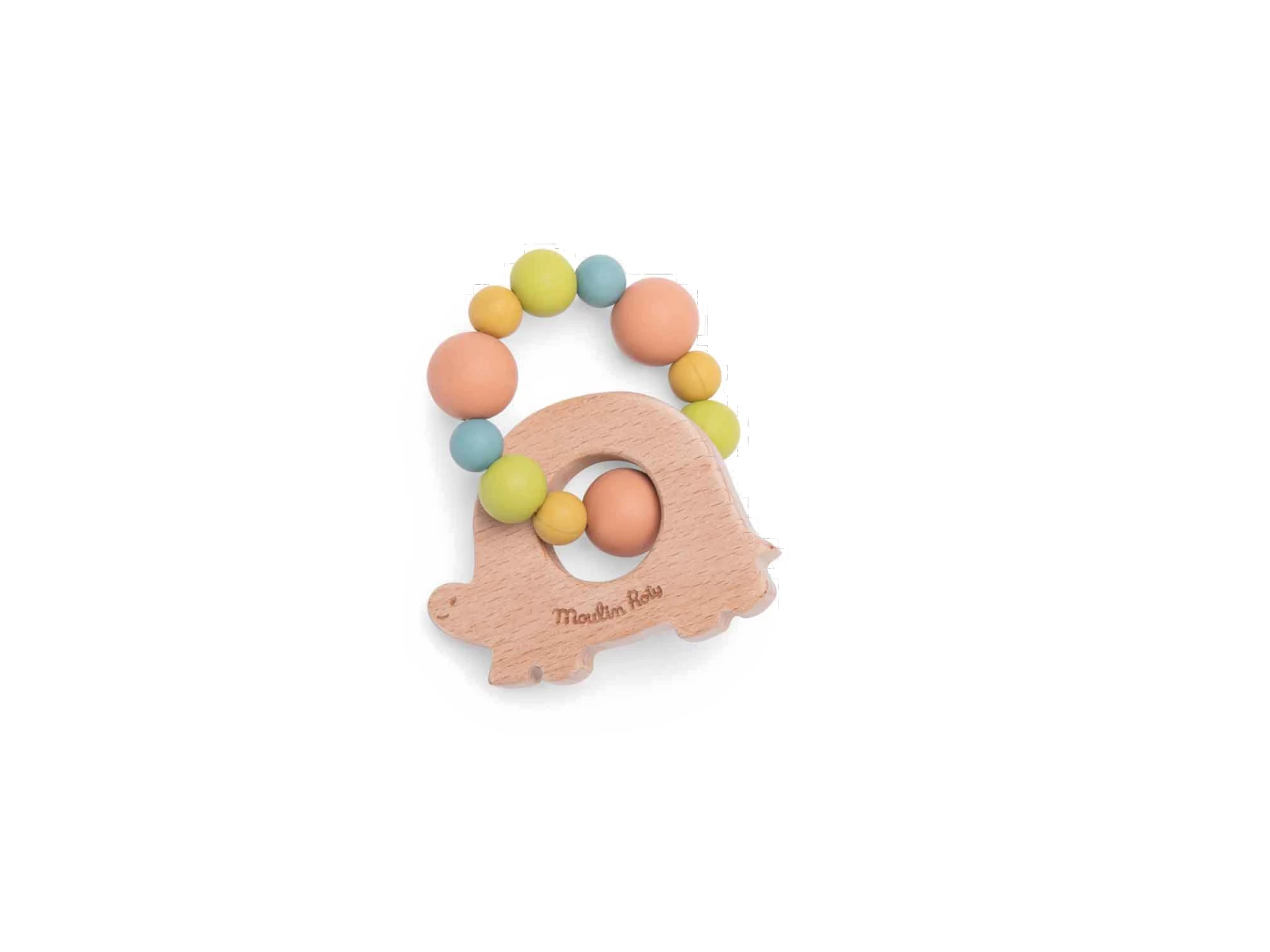 De quoi jouer ou mâchouiller pour bébé avec cet Hochet de dentition tortue en bois et silicone. Bi-matière, il permet à bébé de choisir ce qui soulagera le mieux ses gencives douloureuses. Avec sa forme, il est facile à saisir par les petites mains.
