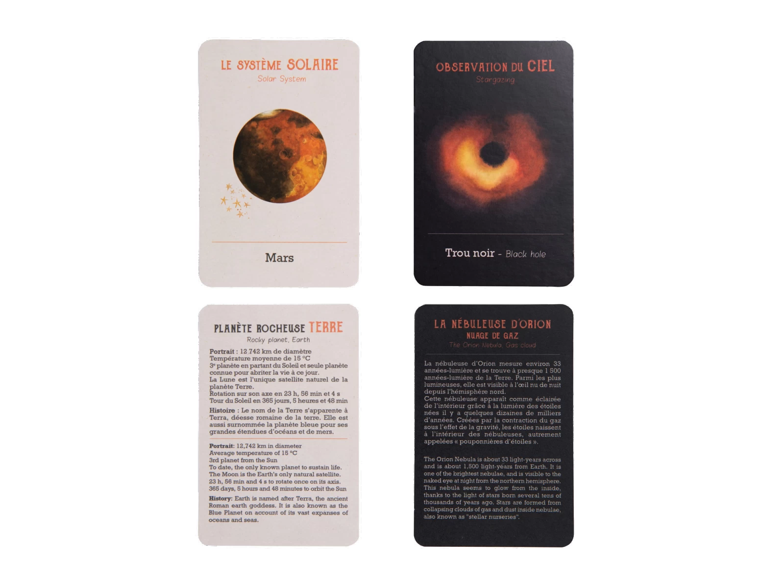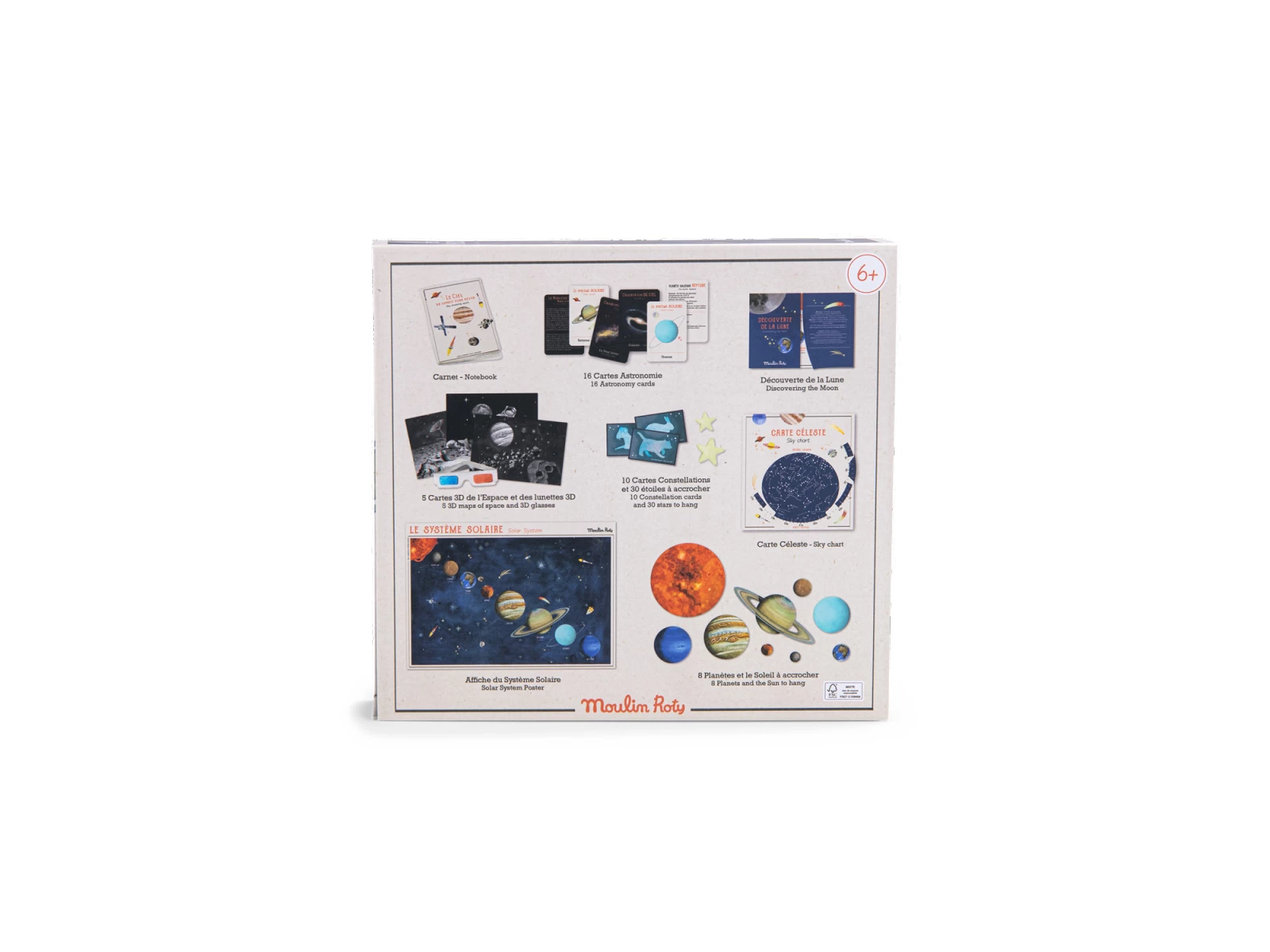 Découvre les merveilles de l’espace ! Dans ce coffret pédagogique, retrouve tout le nécessaire pour voyager depuis la terre vers les autres planètes, le soleil … Comprend 75 accessoires : cartes astronomie, constellations, cartes 3D, carnet d’activités…