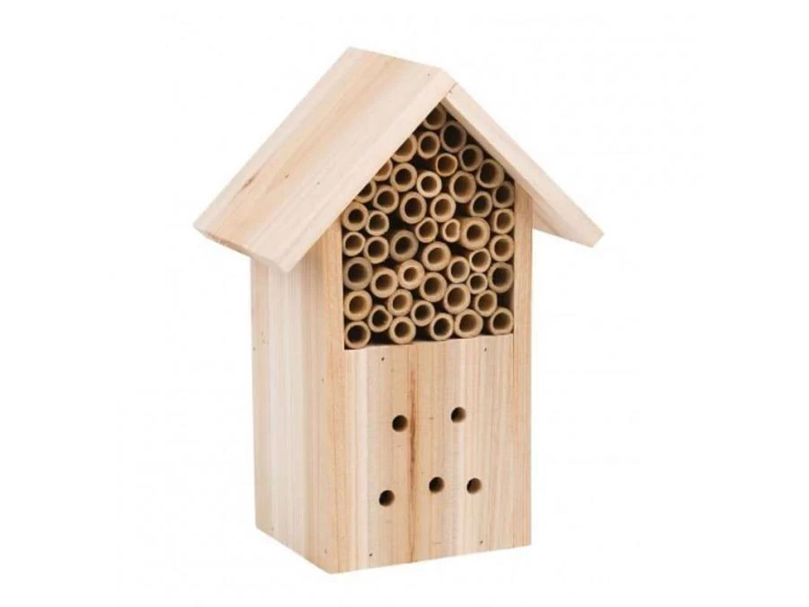 Petite maison en bois massif, composée de cylindres de bambou pour accueillir les insectes. Accrochée à l’abri des vents dominants, ce refuge invite les insectes à passer l’hiver, à se protéger des nuits fraîches, il aide ainsi à préserver l’écosystème.