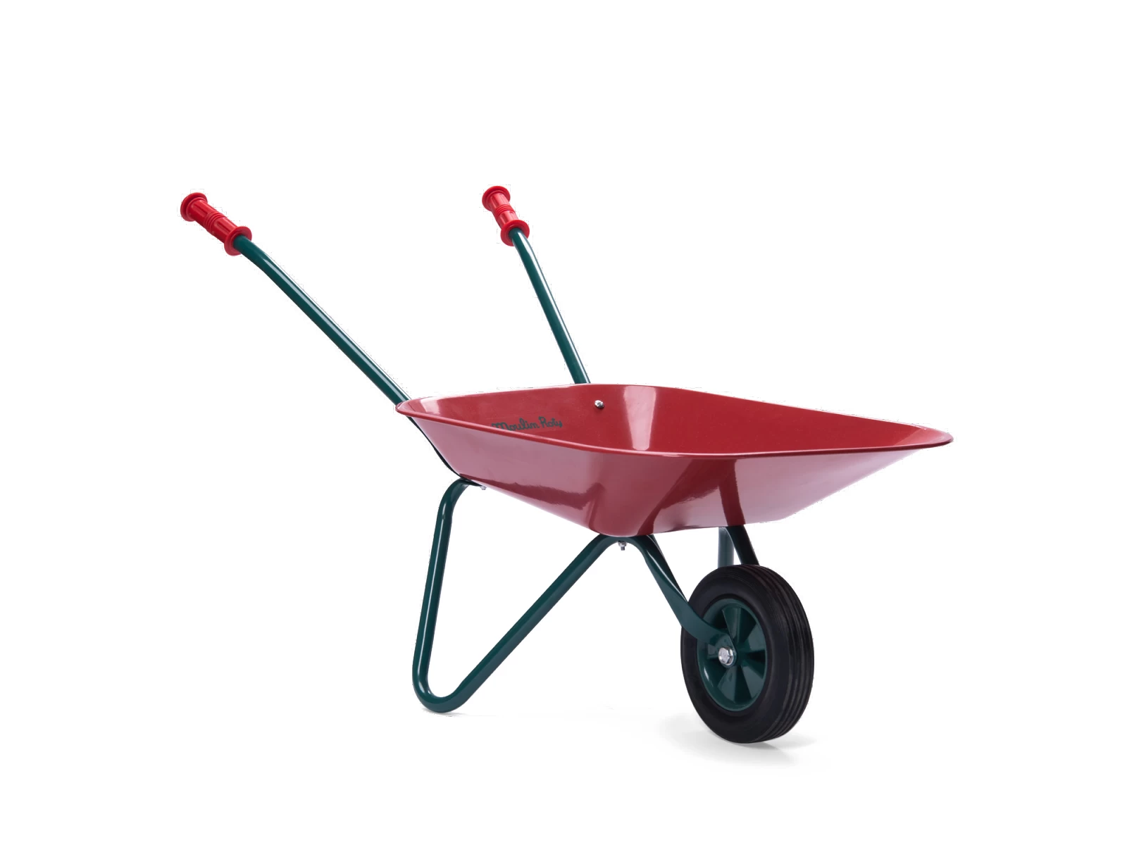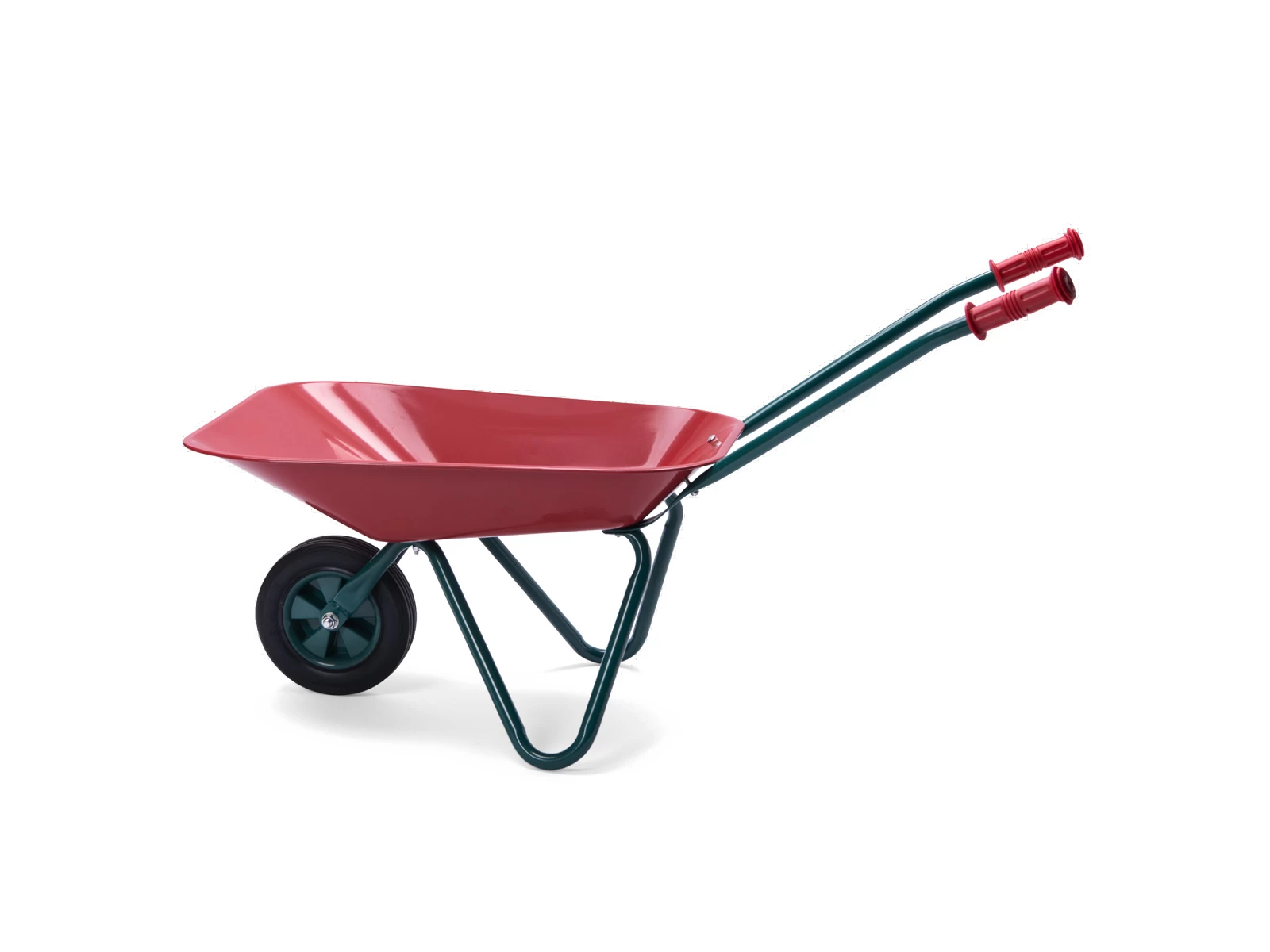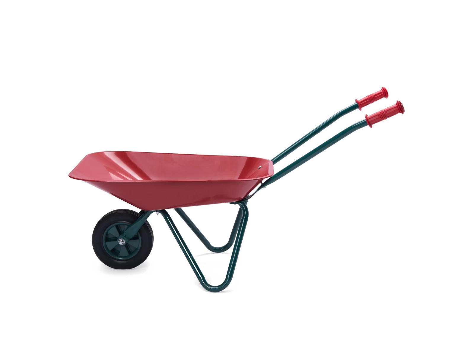 Brouette colorée, légère et solide, avec des poignées basses à hauteur de nos petits jardiniers en herbe, pour qu’ils puissent charger, décharger et transporter facilement tous leurs petits trésors : fleurs, légumes, feuilles, jouets…