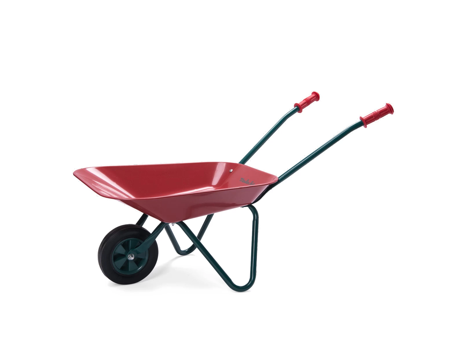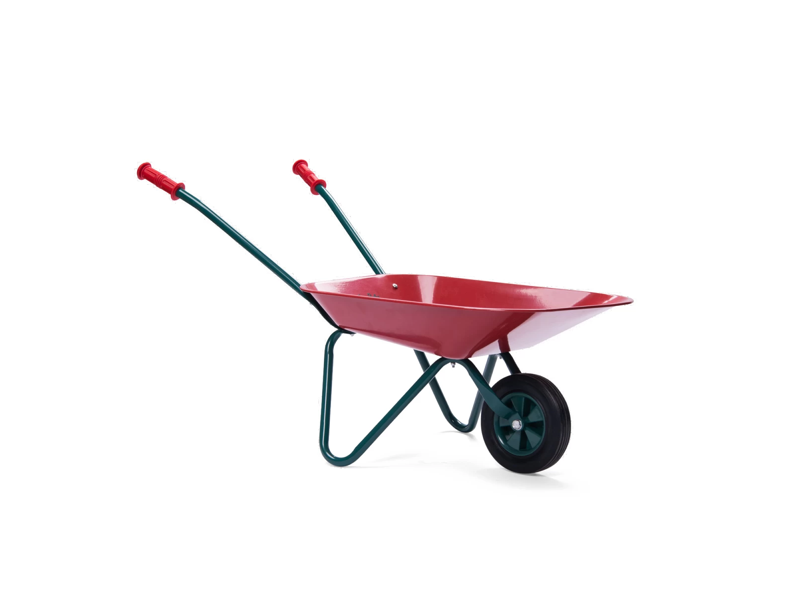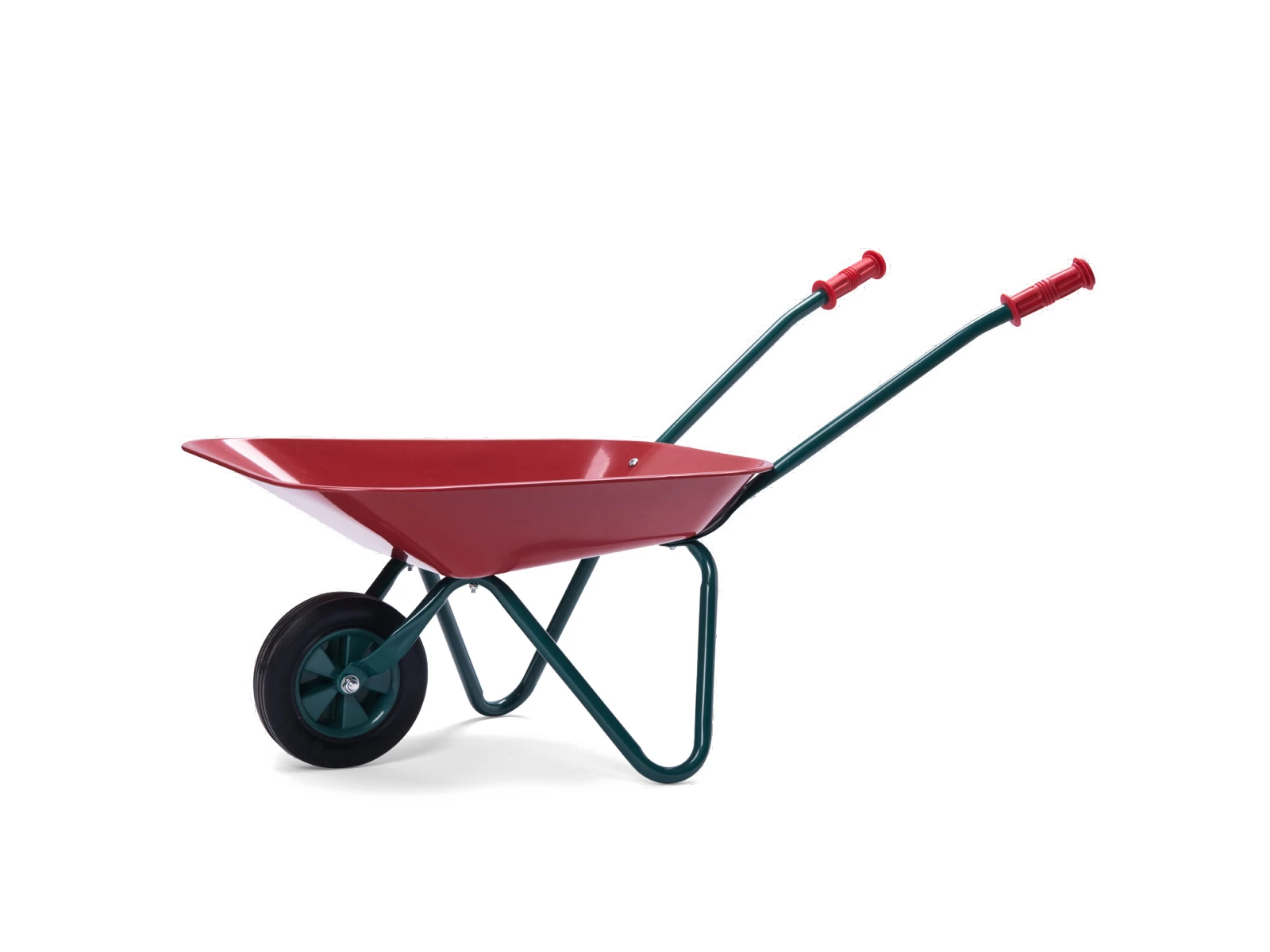 Brouette colorée, légère et solide, avec des poignées basses à hauteur de nos petits jardiniers en herbe, pour qu’ils puissent charger, décharger et transporter facilement tous leurs petits trésors : fleurs, légumes, feuilles, jouets…