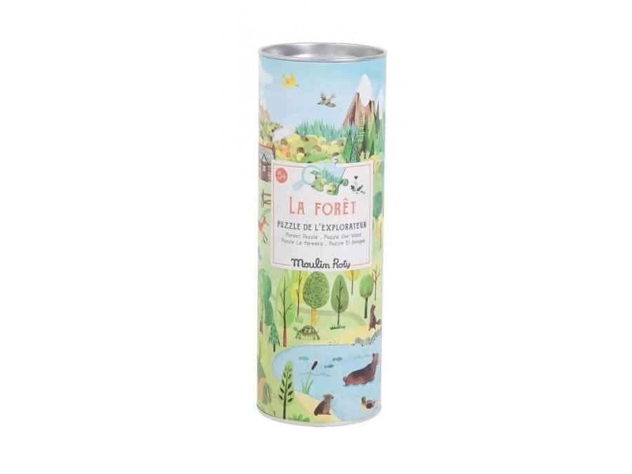 Un puzzle de 96 pièces illustrant à l’aquarelle la faune et la flore de la forêt… Le puzzle est rangé dans un joli tube illustré où l’on retrouve un poster avec un imagier au dos, et une loupe pour observer la scène de plus près !
