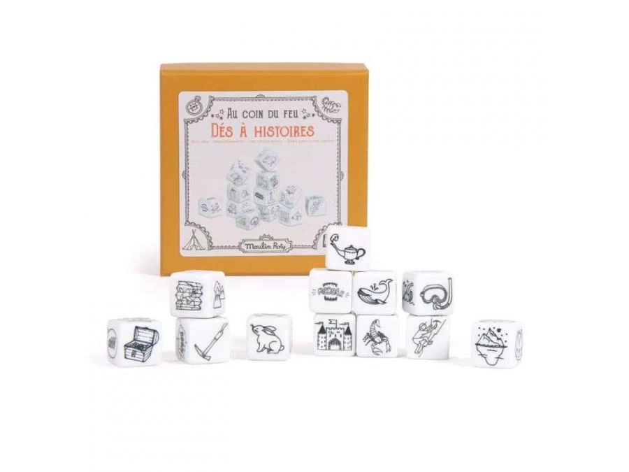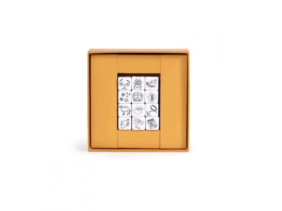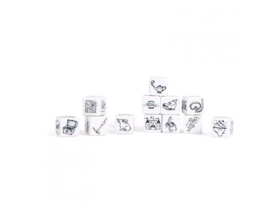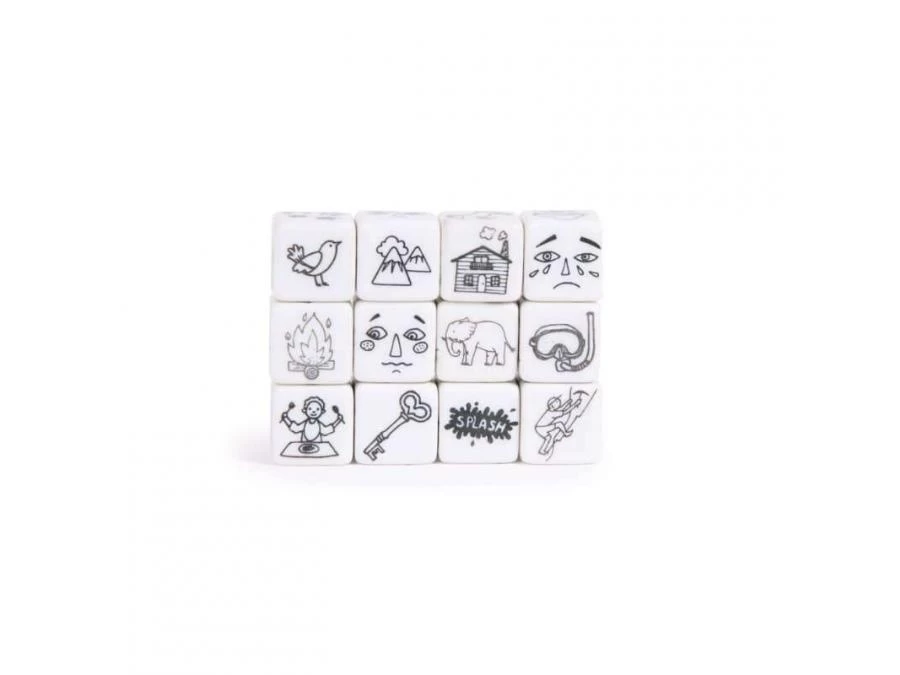 Parfaits pour la veillée au coin du feu : 12 dés illustrés à lancer simultanément ou chacun son tour pour inventer une histoire collectivement, ou à compléter l’un après l’autre. Pas de perdant ni de gagnant, seulement des histoires à inventer !