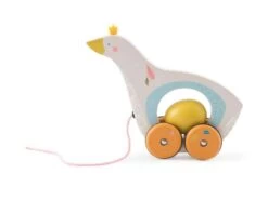 Oie en bois à tirer par une cordelette pour l’emmener partout avec soi. L’œuf dans son ventre tourne lorsque l’oie court ! Couleurs et illustrations rafinées à l’image de la gamme pour une touche de fantaisie.
