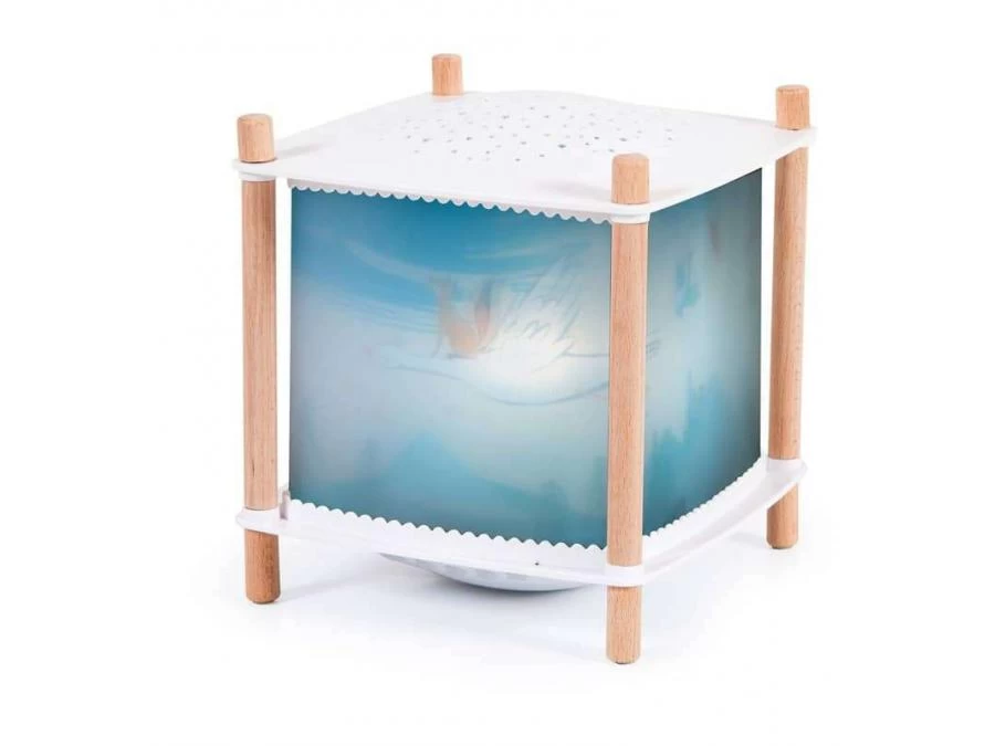 Lanterne magique pour endormir bébé dans l’univers poétique d’Olga. Multifonction, elle projette des étoiles, joue 4 berceuses, se connecte à distance et détecte même les pleurs ! / Câble USB inclus.