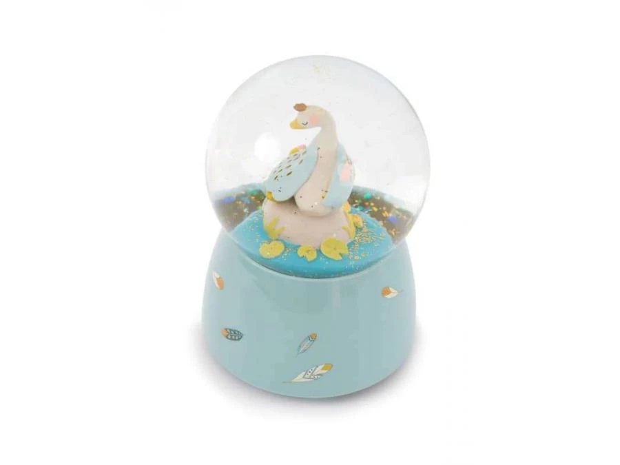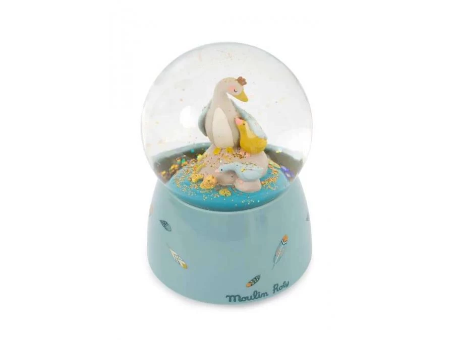 Boule à neige musicale avec Olga et ses petites oies au milieu de paillettes dorées ! En plus de décorer sa chambre, une jolie mélodie viendra bercer bébé au moment du coucher…