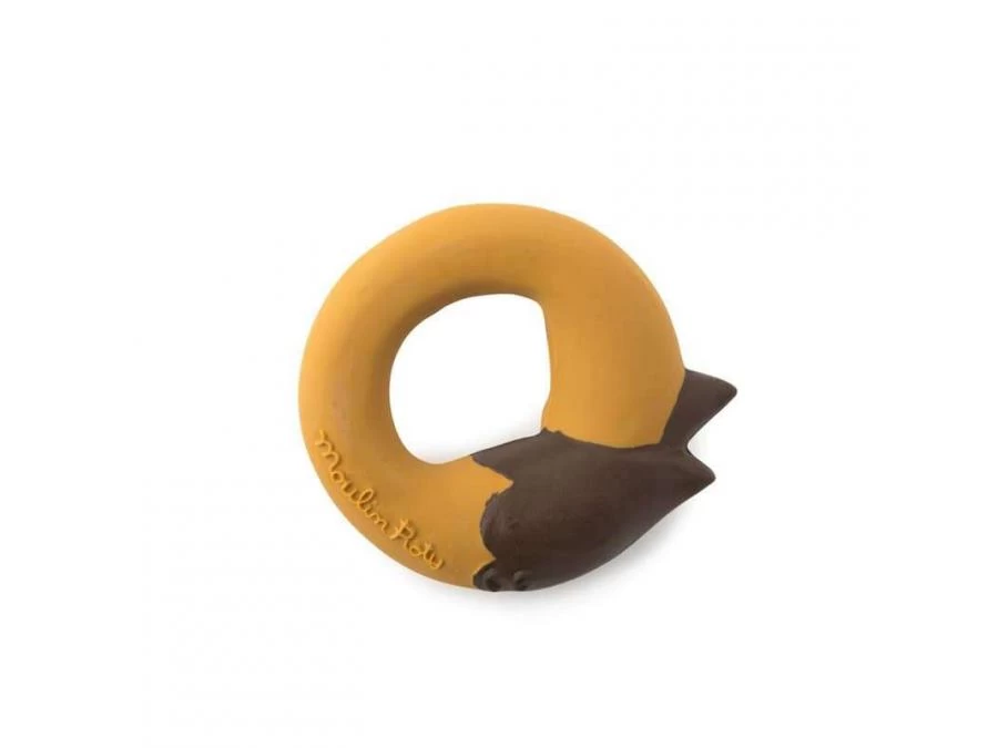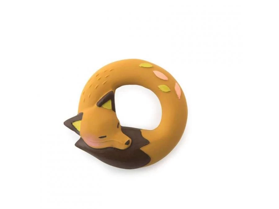 Anneau en caoutchouc 100% naturel, issu de la sève d’Hévéa, avec Chaussette le renard et ses feuilles d’automne. Pour soulager les dents de bébé ou jouer dans le bain, il n’a ni trou ni sifflet pour éviter l’accumulation de saletés à l’intérieur.