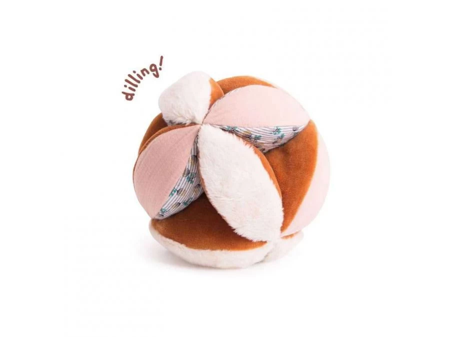 Aussi appelée balle de préhension, elle offre des côtés de couleurs et matières différentes pour stimuler la vue et le toucher. Bébé y glissera ses petits doigts pour apprendre à saisir et secouer les objets… il entendra alors le grelot chanter !
