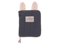 Pochette de protection pour carnet de santé, zippée, en lange gris avec deux oreilles de lapin en lin… Elle peut être brodée au prénom de l’enfant, idéal pour un cadeau naissance.