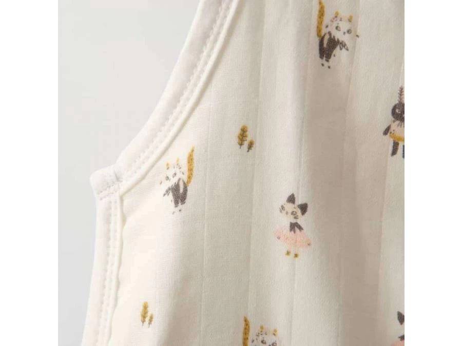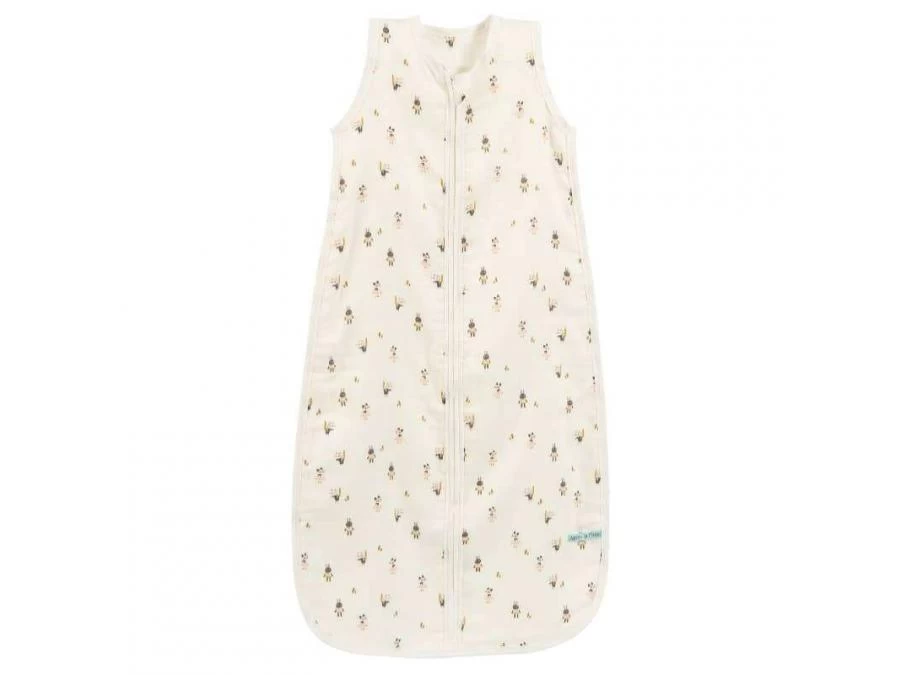 Gigoteuse 6-24 mois (TOG 1) en coton biologique pour laisser respirer la peau de bébé, avec imprimé personnages. Zippée sur le devant.