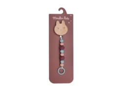 Attache-tétine lapin en bois et silicone pour ne plus perdre la sucette de bébé. S’attache facilement à tout support grâce à son clip ajustable. Les perles de silicone sont sans danger pour bébé, il pourra jouer avec et les mâchouiller.