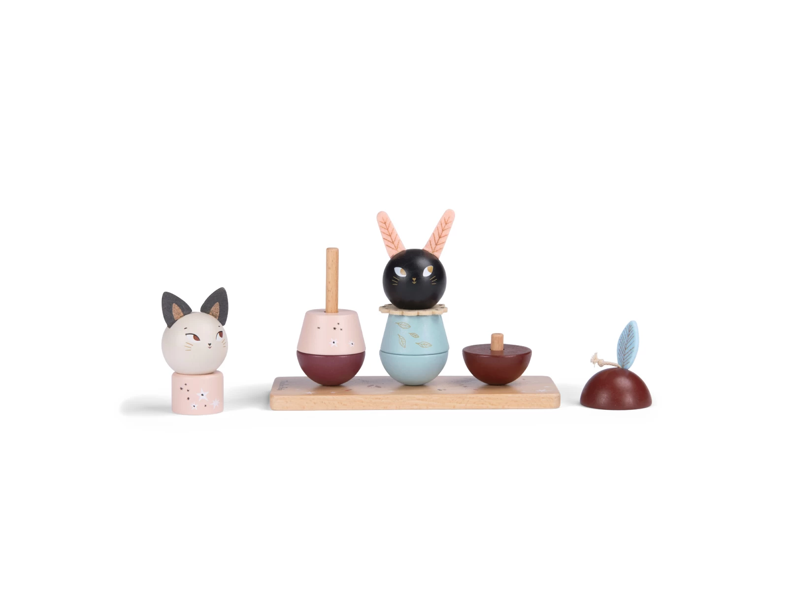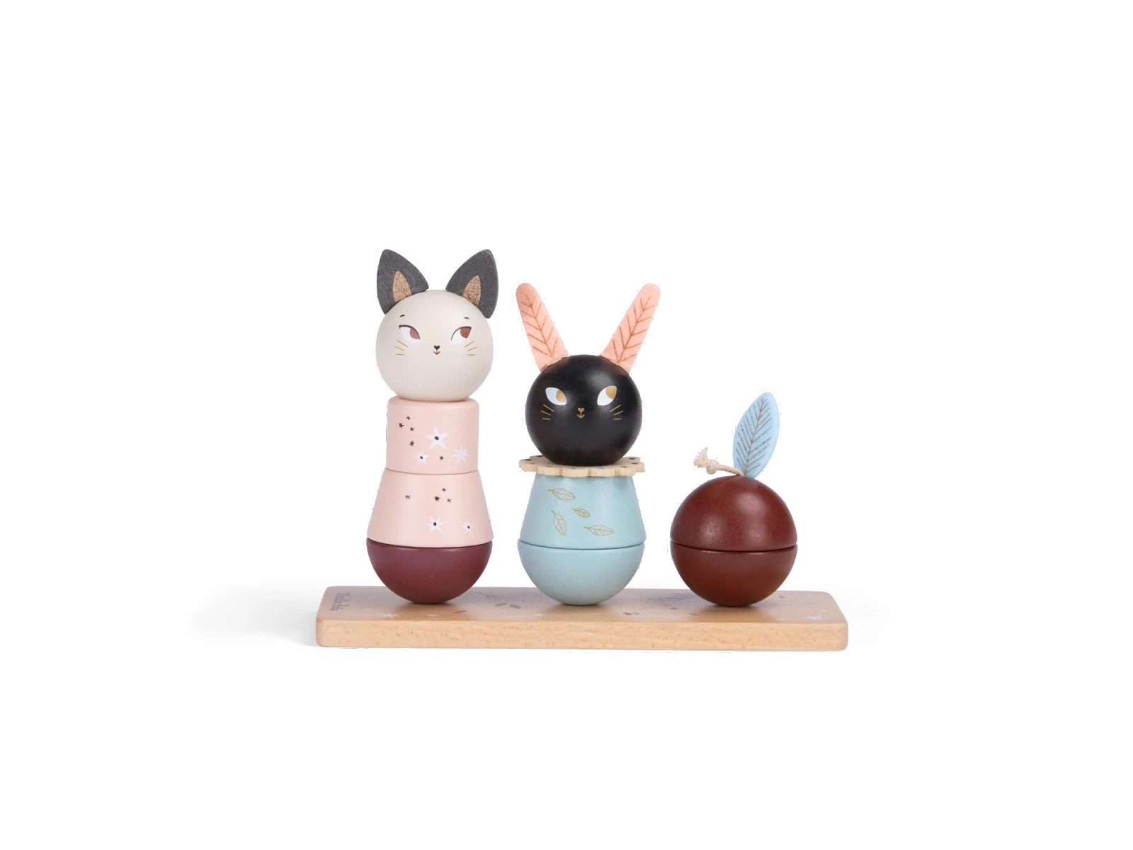Empilable multi-activités pour développer la capacité de l’enfant à manipuler et compter. Sur un socle en bois, empilez les parties en bois coloré pour recomposer les doux esprits d’Après la pluie… ou mélangez-les !
