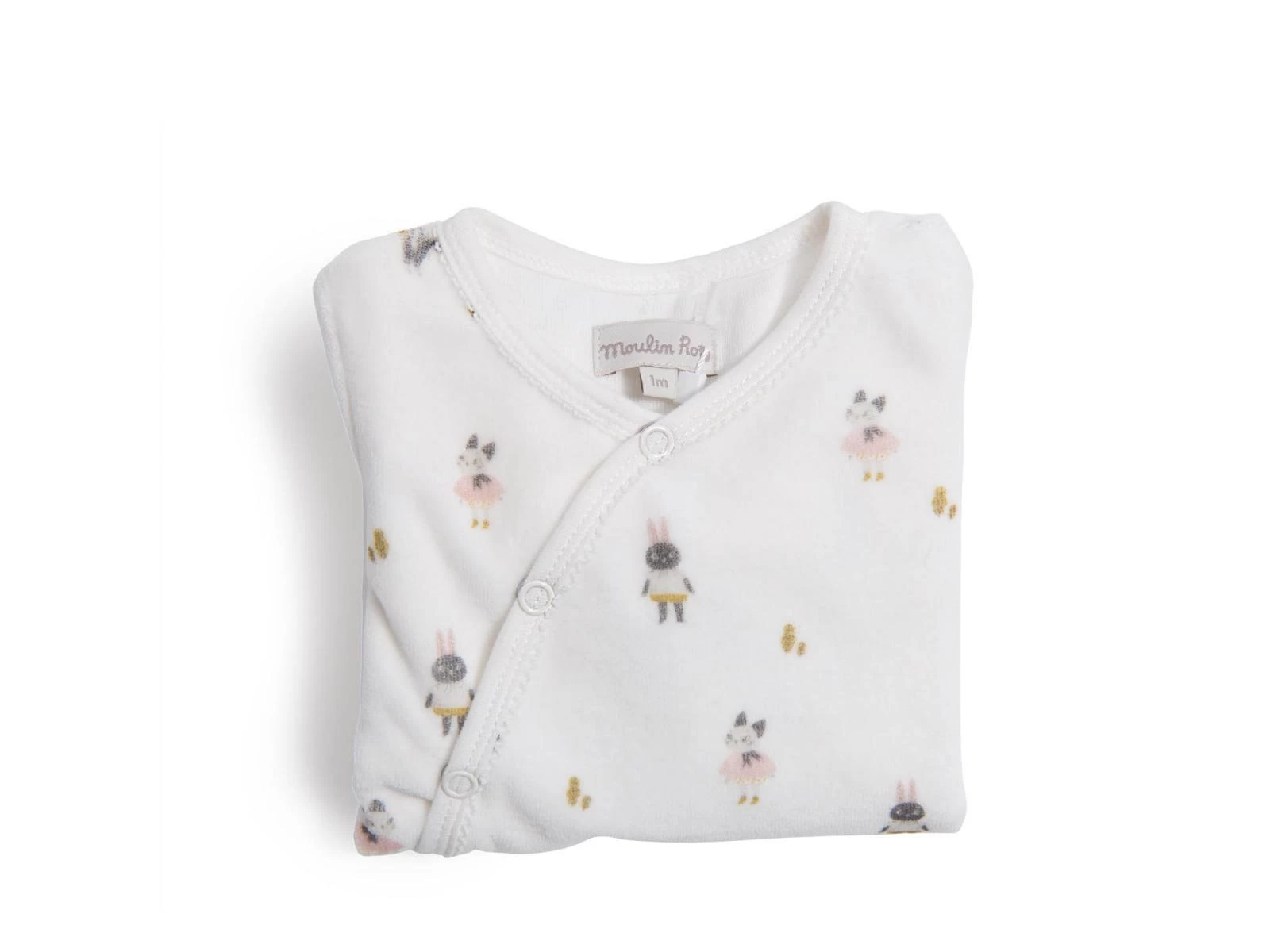 Pyjama 3 mois en velours de coton et son motif personnages, avec ouverture latérale par boutons-pression. Il enveloppera bébé de douceur et le gardera au chaud toute la nuit.