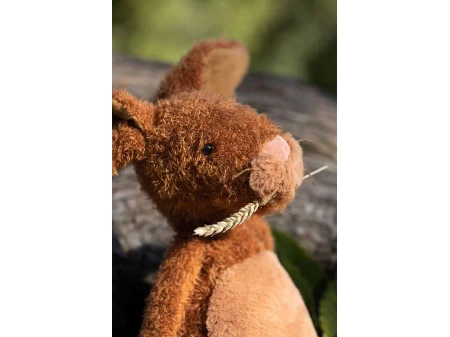 Petit lapin à la fourrure orange brique toute douce, avec semelles et oreilles en lin. Avec son corps moelleux et ses pattes souples, il accompagnera les tout-petits pendant de longues années, pour jouer, ou se câliner…