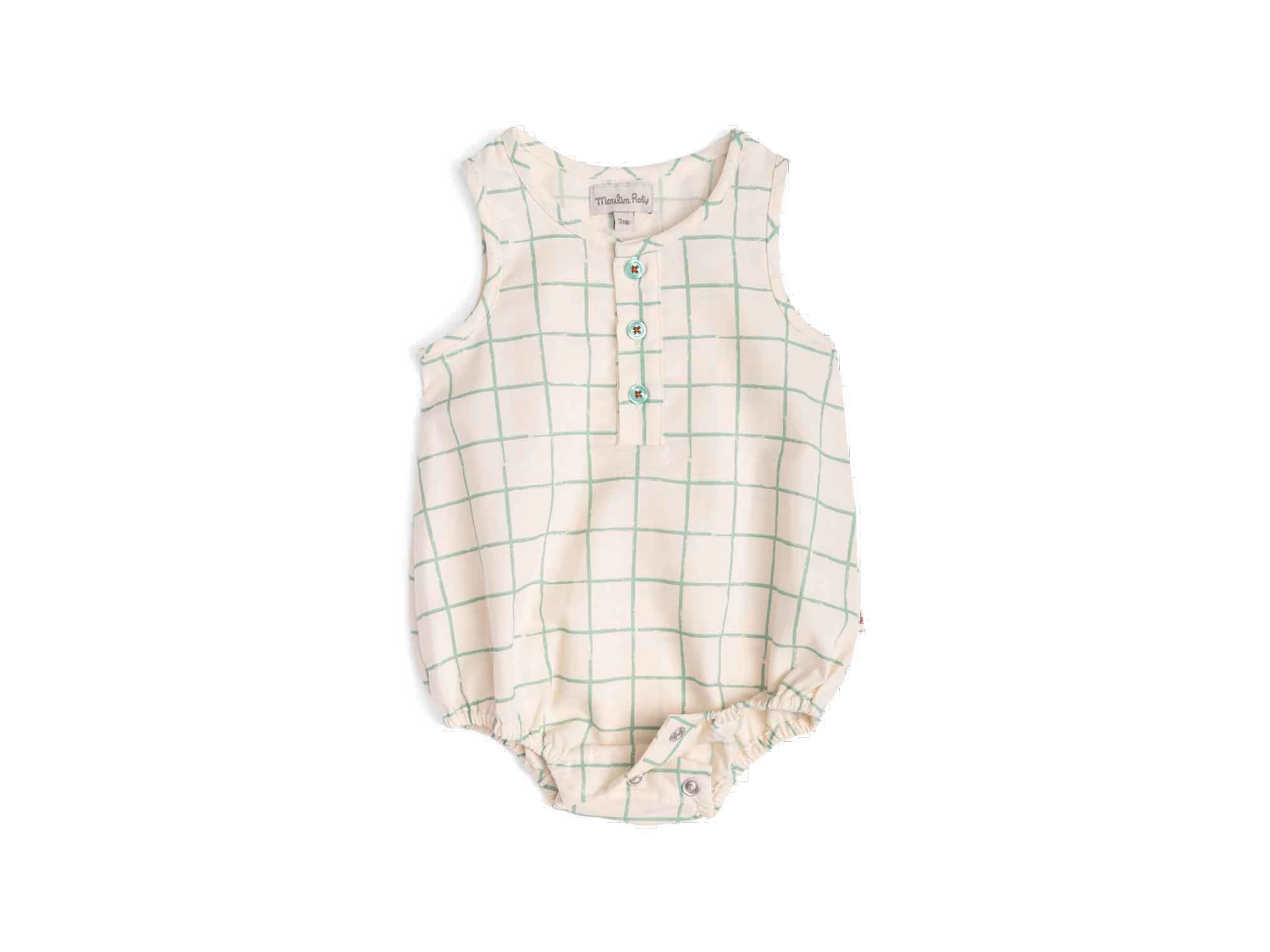 Moulin Roty 719831 – HONORE Combinaison 36m Coton écru Carreaux Verts- 36 Mois