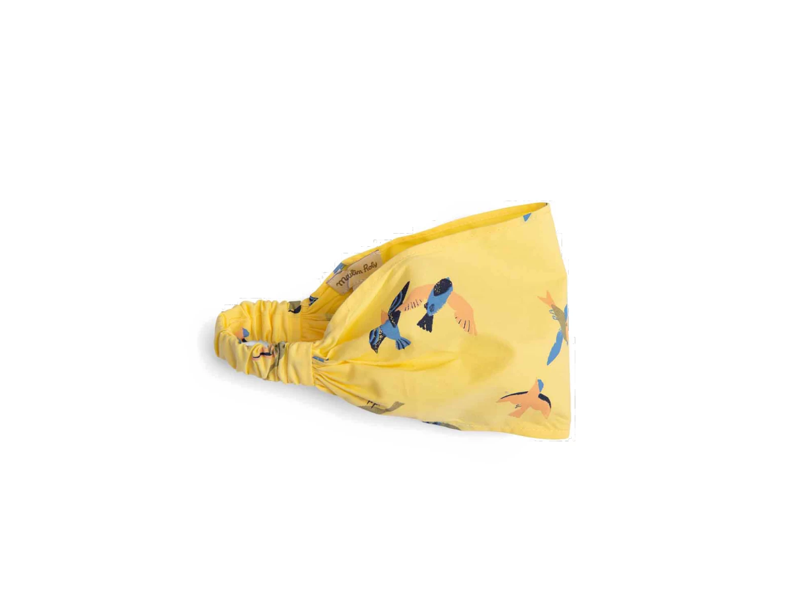 Moulin Roty 719934 – HARRIET Bandeau 12/18m Popeline Jaune Imprimé Allover Hirondelles – 12/18 Mois