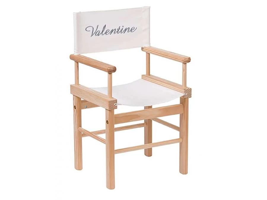 Fauteuil de metteur en scène en bois massif naturel, avec dossier en tissu coton à broder au prénom de l’enfant.