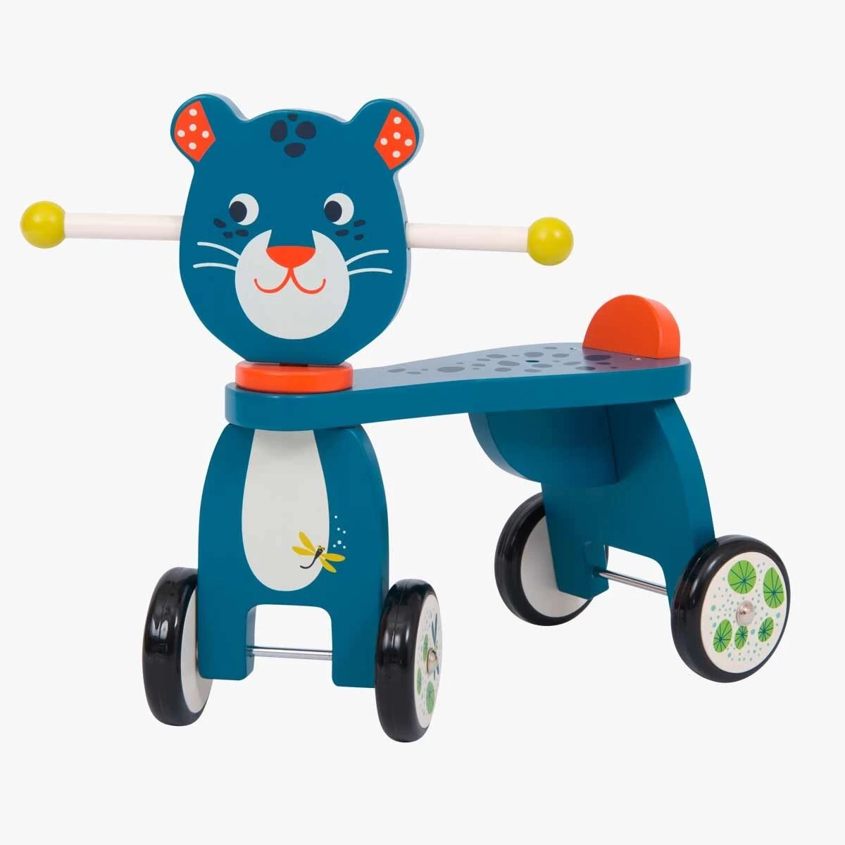 Porteur en bois Zimba la panthère pour rouler comme au milieu de la jungle ! L’enfant à partir d’un an pourra se déplacer facilement, tout en développant son équilibre et sa motricité.